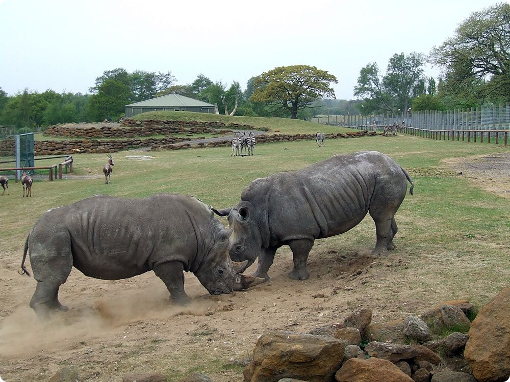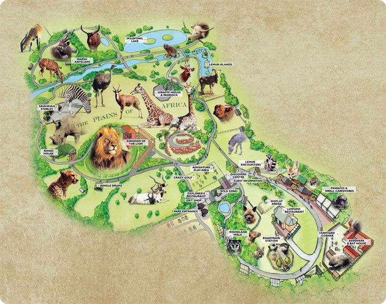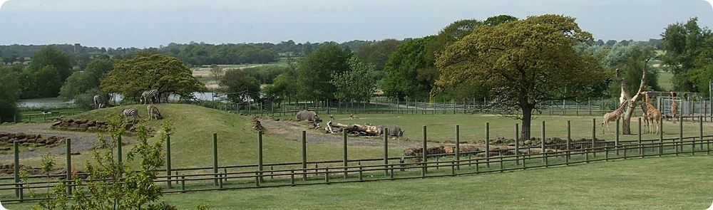 A 40 hektáron elterülő állatpark jellegét tekintve egy kisebb gyalogszafari kialakítására emlékeztethet bennünket, hiszen relatíve nagy területű kifutók uralják a park hangulatát. A bejárattól nem messze található a kert központi fekvésű és egyben legnagyobb kiterjedésű, nagytestű szavannalakó fajokat bemutató kifutója (The Plains of Africa), mely öt állatfaj közös otthona: szélesszájú orrszarvúak, Chapman-zebrák, zsiráfok, tarka lantszarvúantilopok és struccok vonulnak a hatalmas területen. A bemutatóhoz több állatház kapcsolódik ― az Orrszarvúház, Zsiráfház, valamint a zebrák, antilopok és struccok szavannaistállói ― melyek a kifutó egymástól távoli pontjain épültek fel. Az állatházak és a központi kifutó között kialakított, többszörös elszeparálást lehetővé tevő elkülönítő karámok megkönnyítik a vegyesfajú kifutó kezelhetőségét. Az Orrszarvúházban fokföldi szirtiborzok élnek sziklás belső férőhelyükön, melyet fényseregélyekkel osztanak meg.