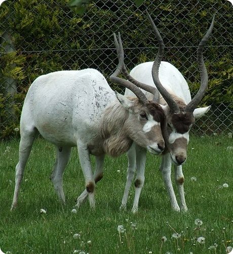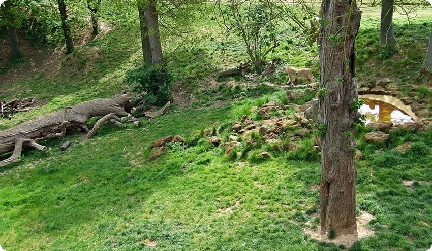 Hosszúszarvú tarka lantszarvúantilopok (balra). A fajból két csapatot tart az állatpark: az egyik a nagy szavannakifutón, a másik egy szomszédos, szeparált férőhelyen kerül bemutatásra. A kifutó közepén egy mesterséges domb emelkedik (jobbra).