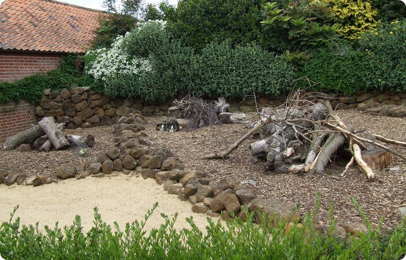 A ragadozók bemutatóit elhagyva érkezünk meg a kecskesimogatóhoz (Farm Yard), melynek szomszédságában élnek az állatkert tarajossülei. A simogatón áthaladva léphetünk be a Földimalac- és Denevérházba (Aardvark & Bat House). Az épületben került kialakításra a földimalacok belső férőhelye, valamint fakó repülőkutyák egy kisebb csapata és néhány kisemlős- és hüllőfaj is ebben az épületben tekinthető meg.