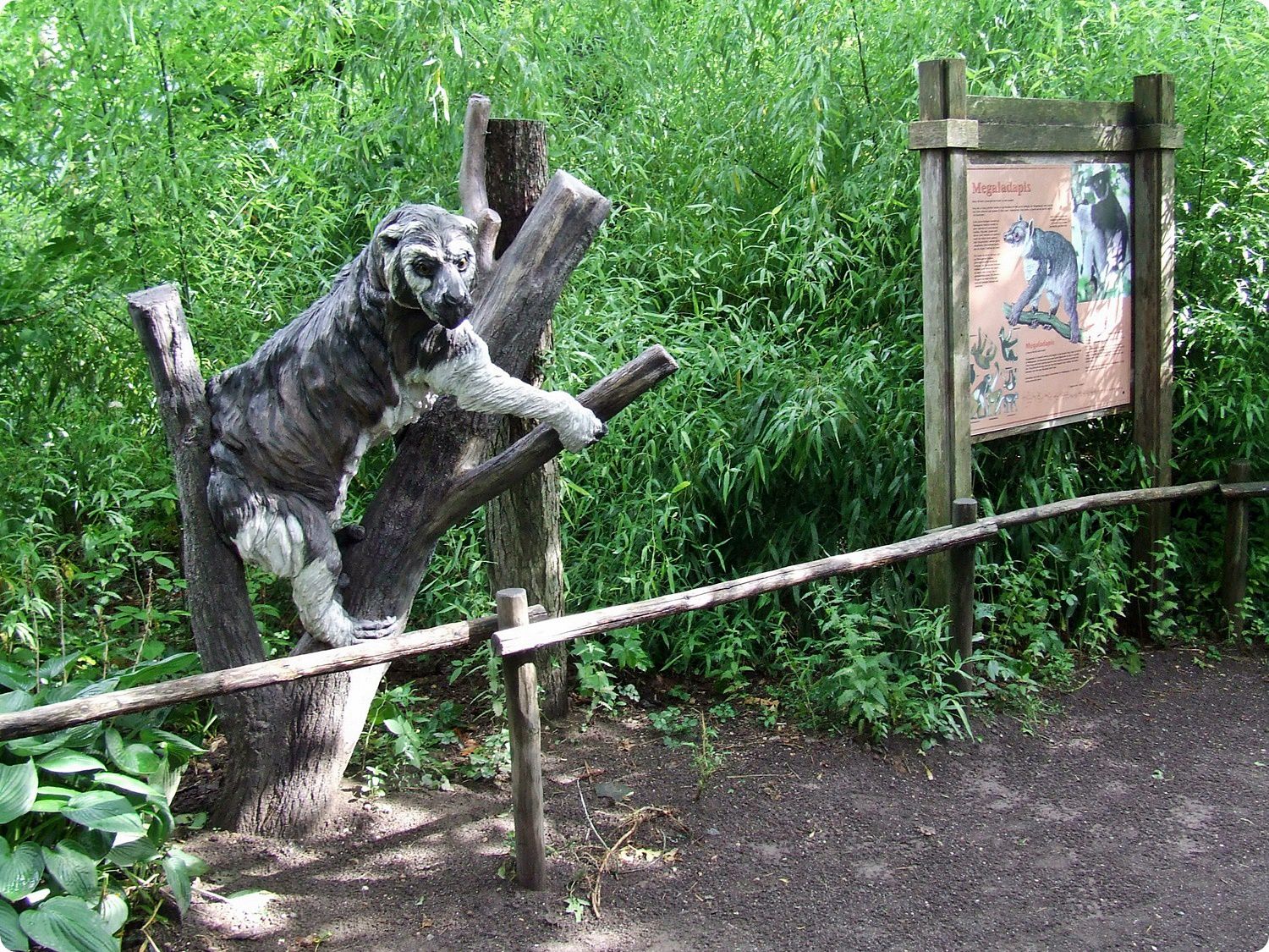 A lenti felvételeken bemutatott, napjainkra már kihalt elefántmadár (Aepyornis sp.) és óriáslemur (Megaladapis sp.) életnagyságú szobra az emberi terjeszkedés és térhódítás mértéktelen voltára hívja fel a látogatók figyelmét.