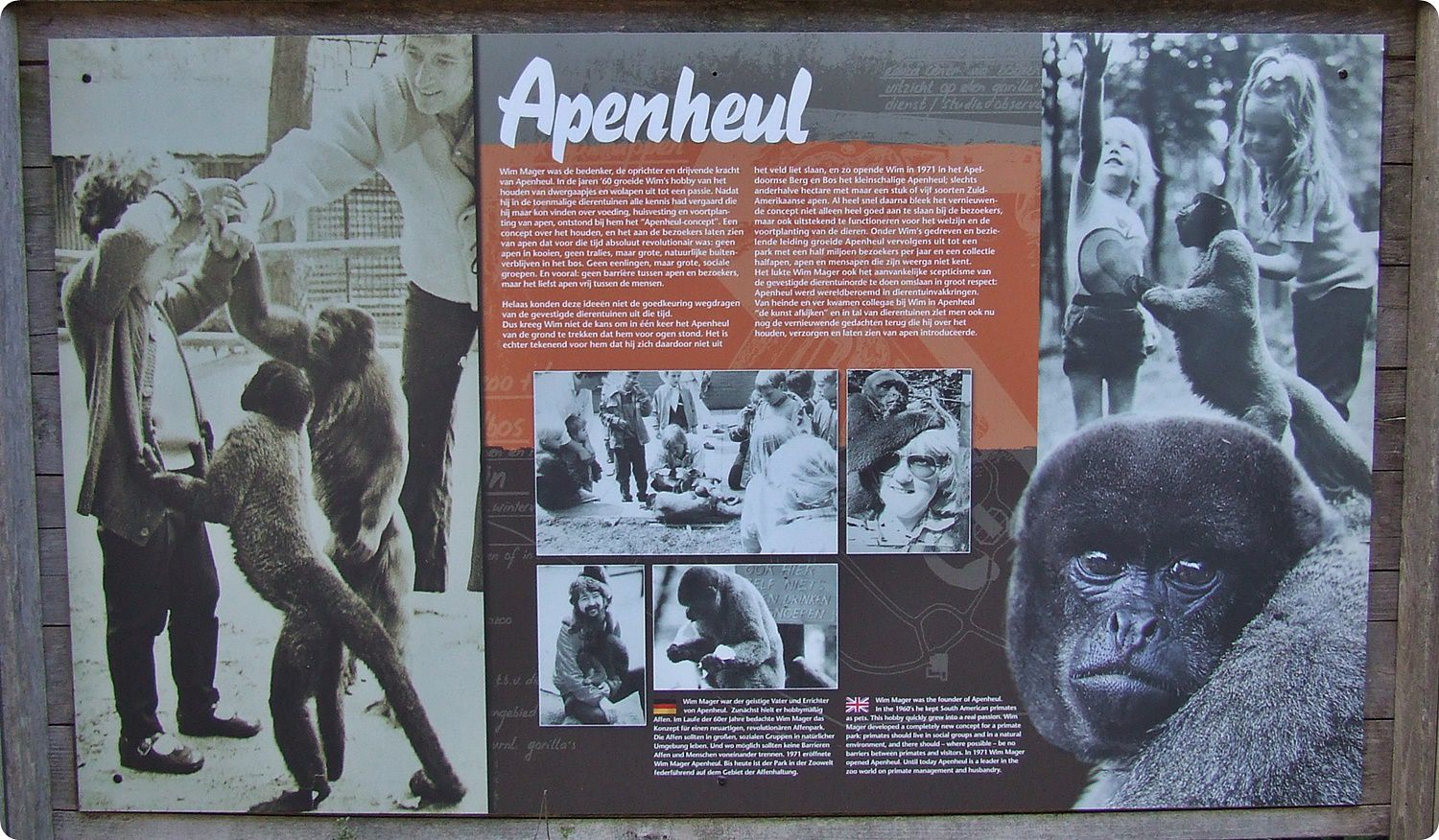 Jelen írás tárgya szintén egy specializált állatkert, mégpedig az Apeldoorn városában, Wim Mager (1940-2008) által alapított Apenheul Főemlős Park (Apenheul Primate Park) lesz, mely 1971-ben nyitotta meg kapuit. A rotterdami származású fotográfus dél-amerikai majmokat, eleinte tamarinokat tartott magánkézben a hatvanas években. E „hobbitevékenység” hamarosan igazi szenvedéllyé nőtte ki magát, s Mager feladva szakmáját, sorra látogatta az ország állatkertjeit, mely tapasztalat később a majompark megnyitásához vezetett. A korabeli, viszonylag apró, mindössze másfél hektár területű intézmény már kezdetben egy „forradalmi” újításnak köszönhette népszerűségét: a főemlősök rácsok nélküli, tágas, szinte „féltermészetes” erdei környezetben kerültek elhelyezésre, s amely fajok esetében arra lehetőség adódott, a látogatók is besétálhattak az állatok területére. Ezen innovációt nevezhetjük „apen-heul”-i koncepciónak, mely az intézmény nevére utalóan „majmok menedékét” jelenti (apen – majom, heul – menedék).