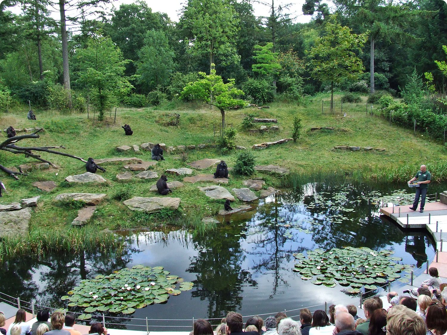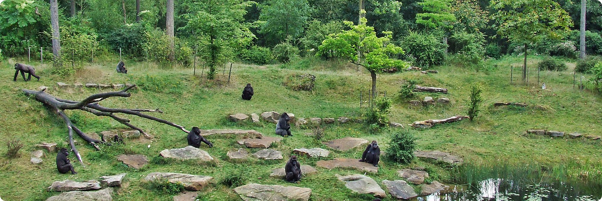 A jobboldali fotón Jambo, a jelenlegi ezüsthátú látható. A vezérhím 2006-ban érkezett a Krefeldi Állatkertből. Alul szintén a gorillák szigetét láthatjuk az állatkert más-más pontjairól.