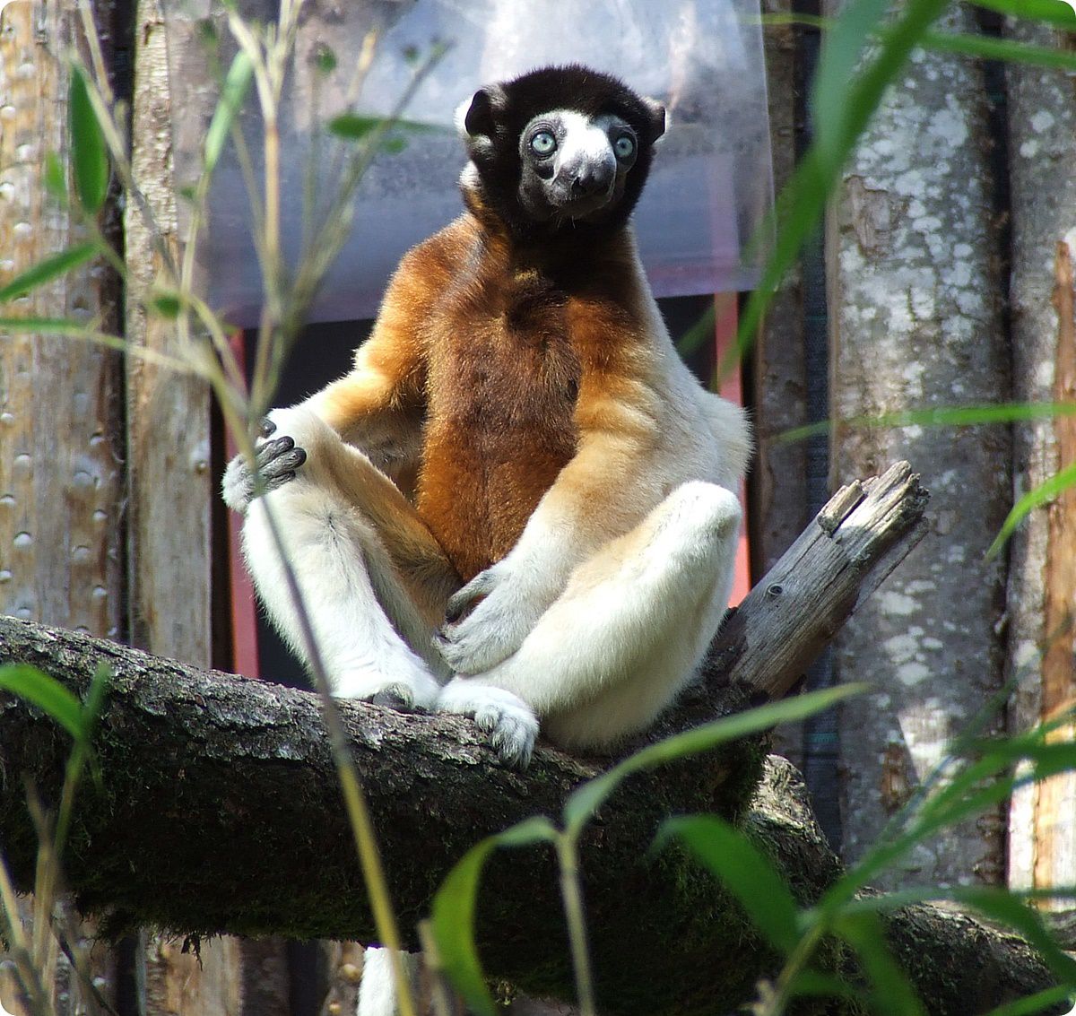 Fent egy vörös vari és egy vöröshasú barnamaki látható. Utóbbi faj korábban a szifakákkal került közös bemutatásra.