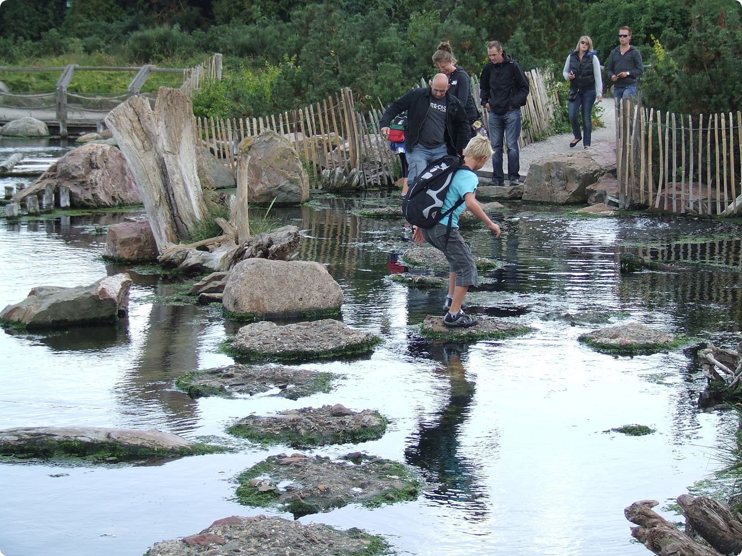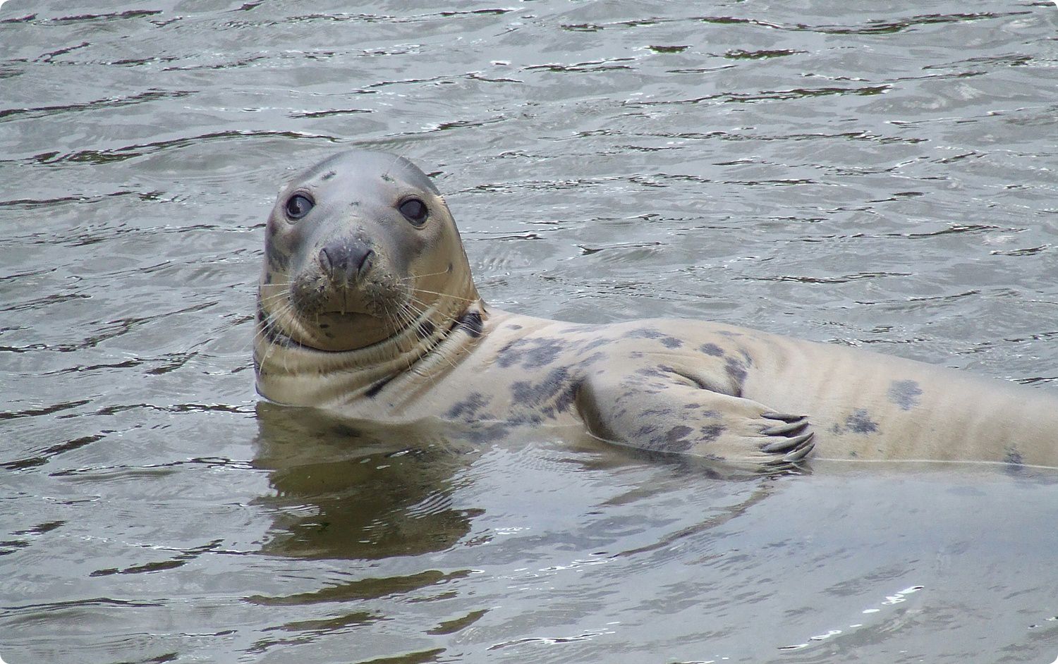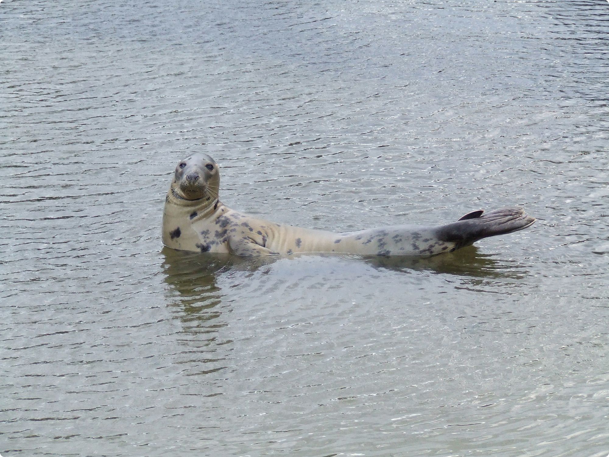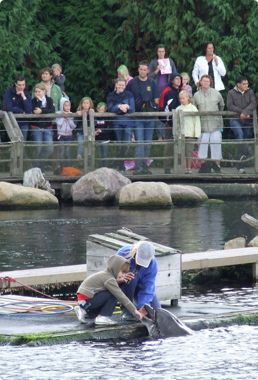 A lagúnabeli élményekkel feltöltődve a park egy egészen más kiépítésű részére érkezünk. A homokdűnék között kanyarogva két európai elterjedésű fókafaj nem szokványos bemutatóiba botlunk. A kúpos fókák (Halichoerus grypus) a nyári meleg enyhítésére terjedelmes, homokos partú tavukban hűsölnek, a borjúfókák (Phoca vitulina) szintúgy. Előbbiek egy leshelyként szolgáló kis faépítményből is megtekinthetőek, bemutatójukat elhagyva pedig egyenesen a tengerpartra sétálhatunk. Érdemes azonban nem túl sokat elidőznünk itt, hiszen nem messze található a park „állatsimogatója”. Ez természetesen csak részben helytálló megnevezés, de való igaz, hogy az Északi-tenger halfajait bemutató, csarnok méretű, alacsony falú medencében bizonyos halak könnyedén megérinthetőek. Az intézmény e szegletében található még a gyerekek számára programot kínáló két épület, ahol 4D-filmvetítés és egy oroszlánfókákkal tartott játékos előadás várja az ifjú látogatókat.
