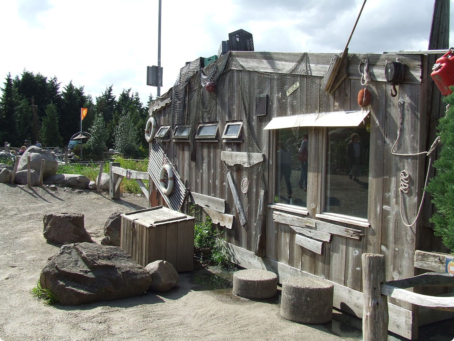 A part mentén kialakított faház egy halászkunyhó imitációja.