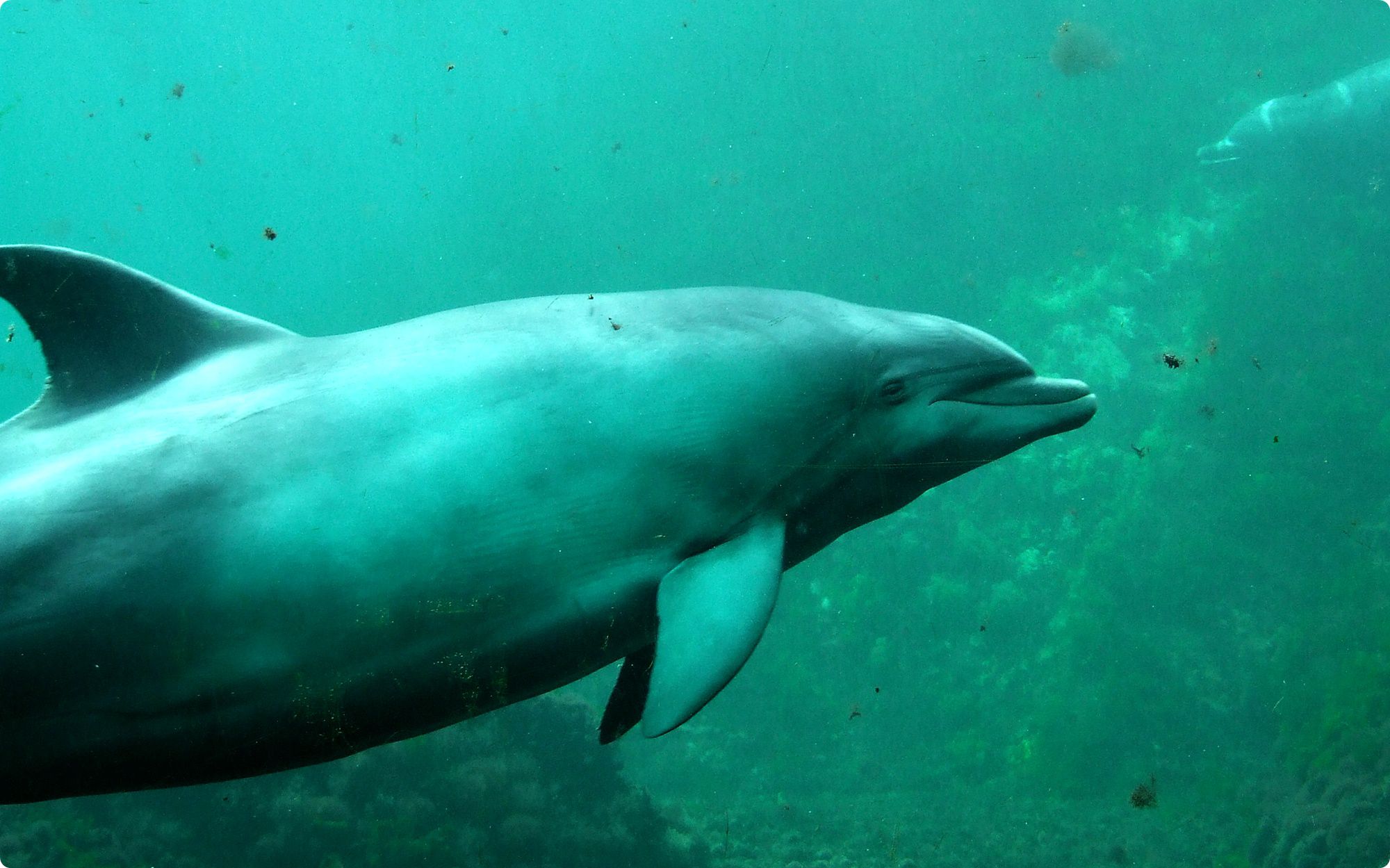 Palackorrú delfinek a delfinlagúnában. Az intézmény jelenlegi állományát kb. 25 példány alkotja.