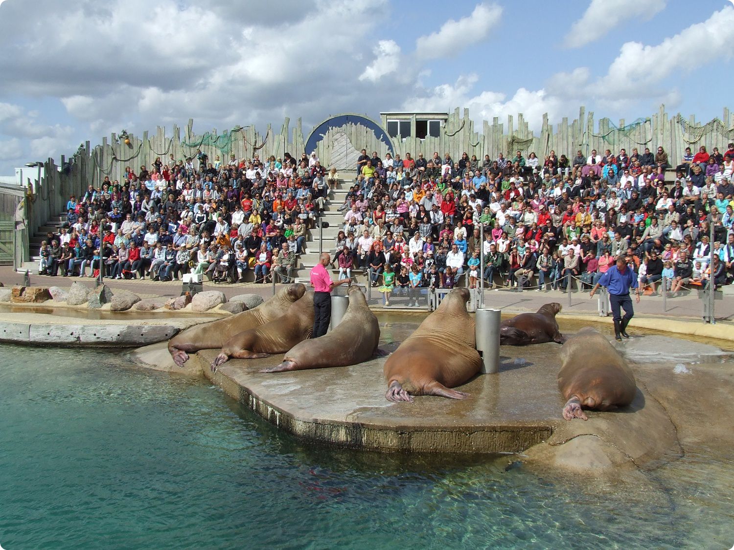 Európában igen kevés helyen láthatunk rozmárokat. Harderwijk jelenleg hat példány, két hím és négy nőstény otthona. A bemutató kezdetén az állatok két csoportba rendeződnek, és egy vetélkedő keretében különféle feladatokat oldanak meg trénereikkel.