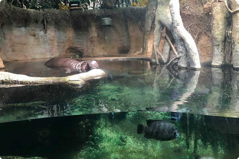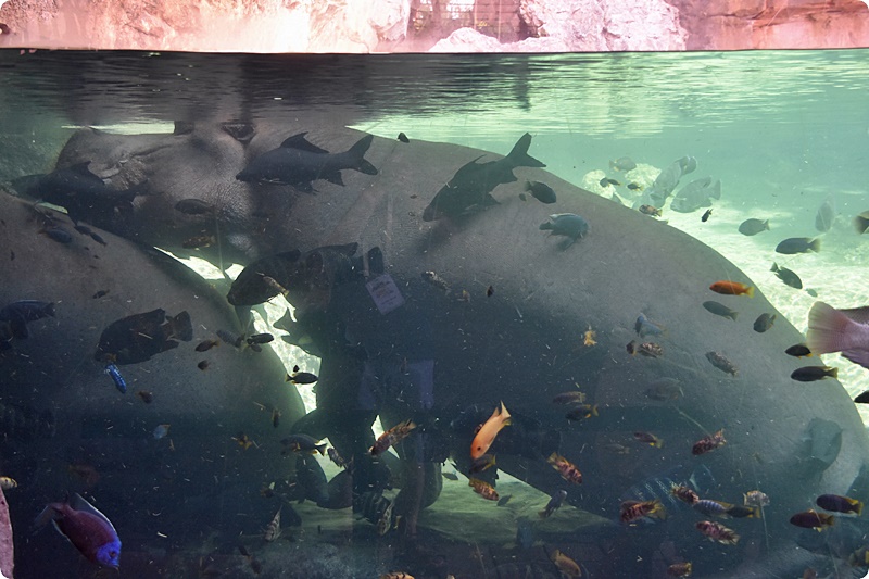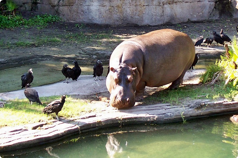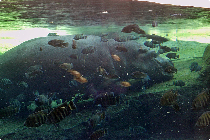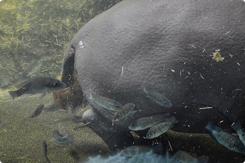 On the basis of the mutualism described above several zoological institutions place African Cichlids in the pond of their Hippopotamus exhibits not only because they both exist in their wild habitats together, but because would like to demonstrate their natural symbiotic relationship where different fish clean the hippos’ bodies which then provides them with a great source of nutrition and additionally help to improve the water quality of the pool.