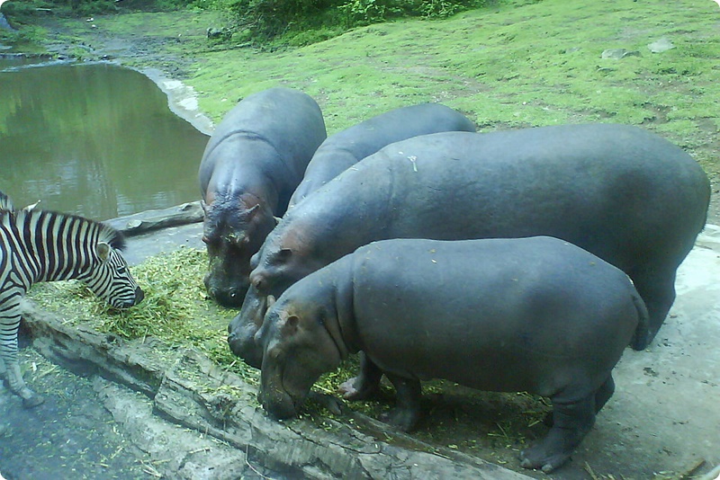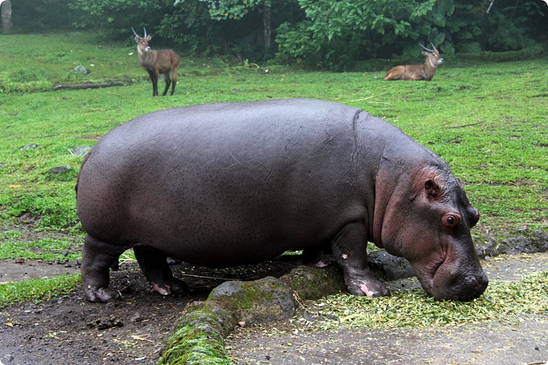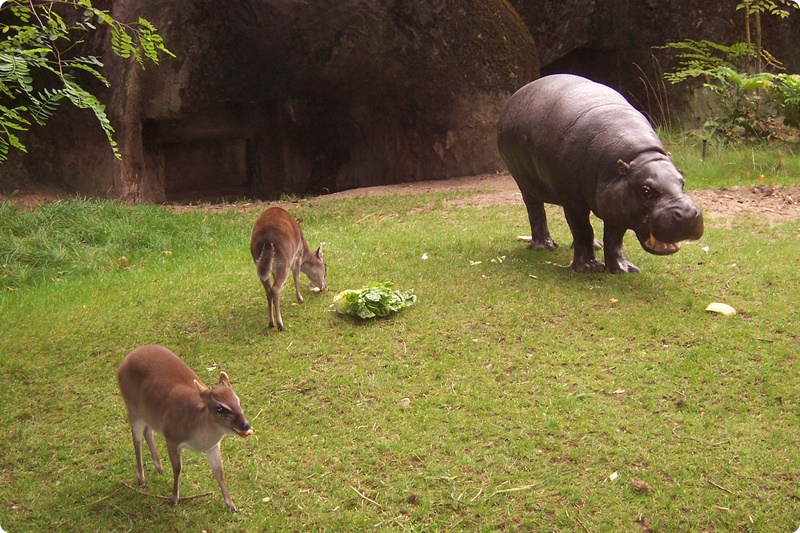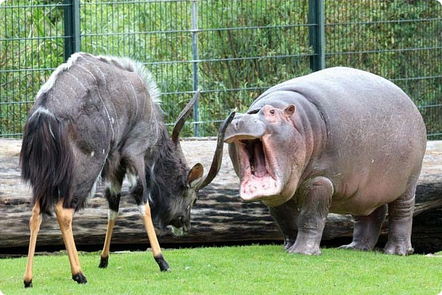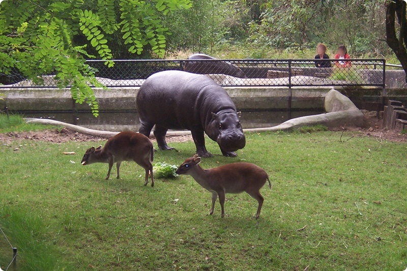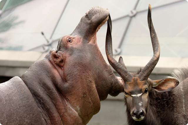 In the list below you can see that both species of hippopotamids have been kept in mixed exhibits in captivity: