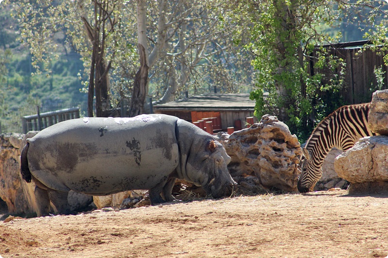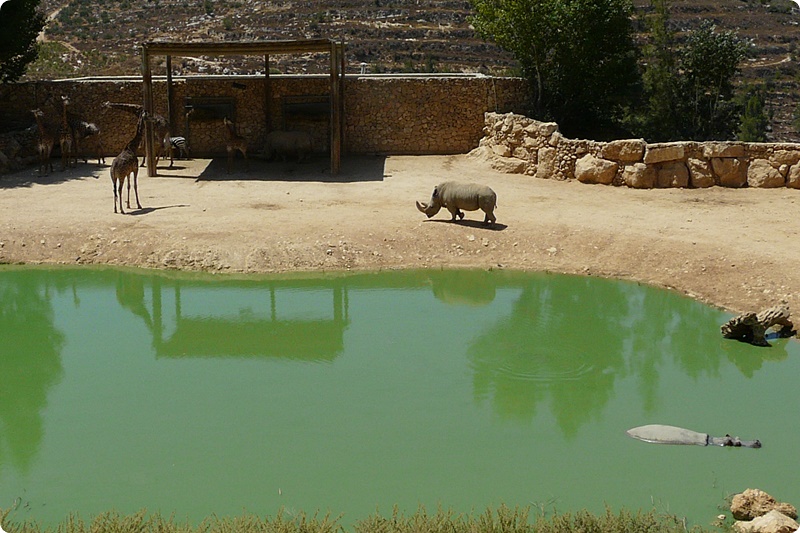 Jerusalem Biblical Zoo kept a single female Hippopotamus in a mixed exhibit with other African species, including Grant’s Zebra, Southern White Rhinoceros, Addax, South African Giraffe, Masai Ostrich and Marabou. The hippo was moved there when she was already old and her mobility was limited so the staff felt confident to put her together with the other species. The hippo died two years ago – at the very respected age of over 59 years old – after living for about 9,5 years in the mixed exhibit without any incidents. Since her death the management has been discussing to introduce young Hippopotamuses into the same exhibit, but this is something that the institution has not done yet, as they feel that with younger individuals there will be a need to first make some major adjustments to the yard to guarantee keeper safety and also that of other species (WERNER 2020, pers. comm.).