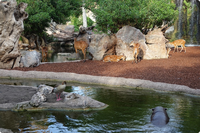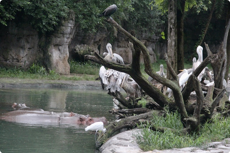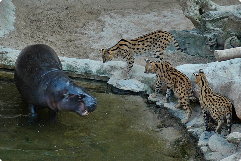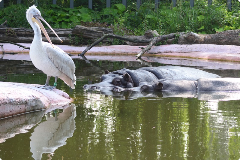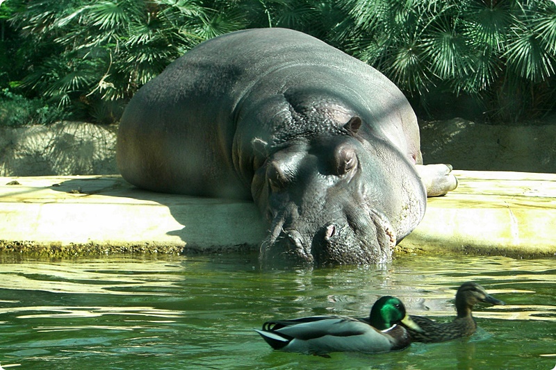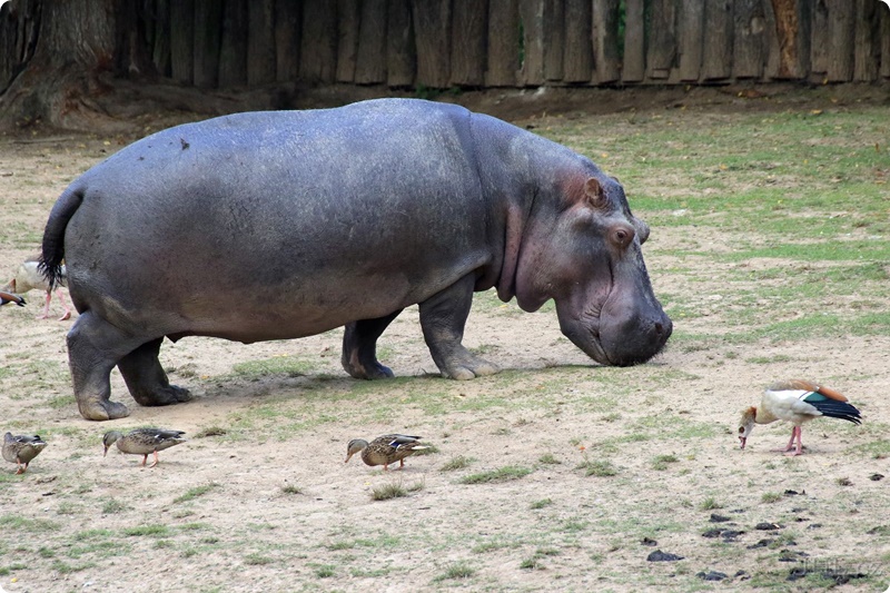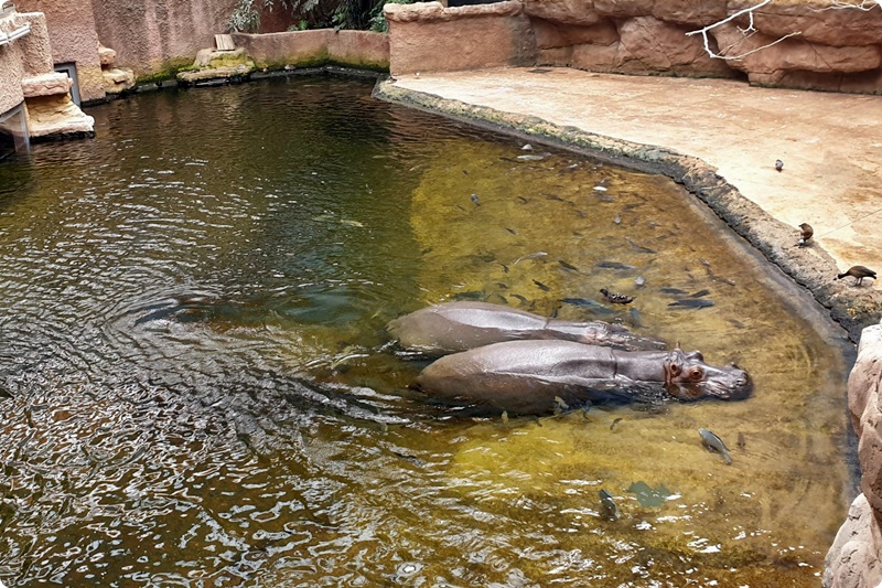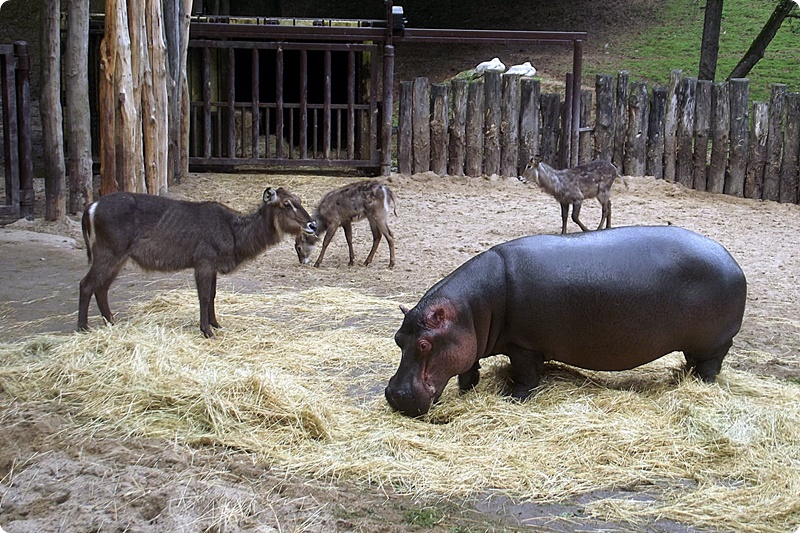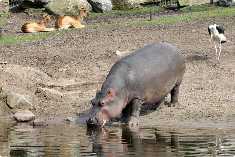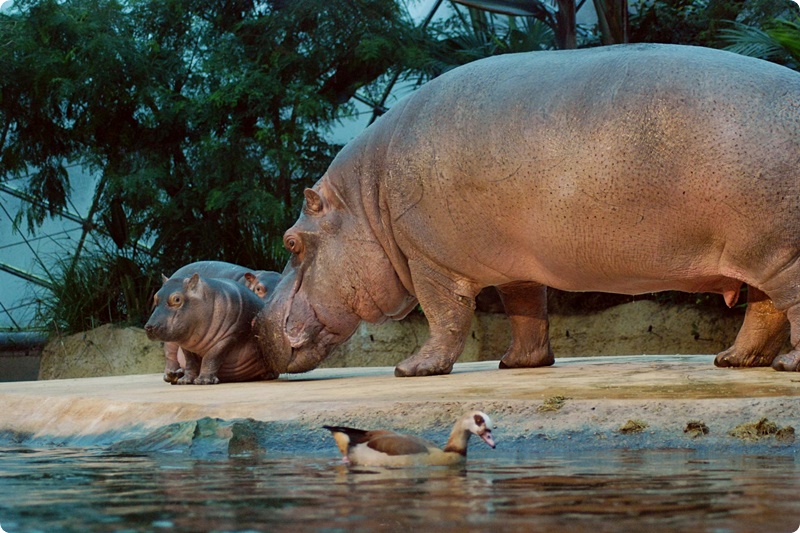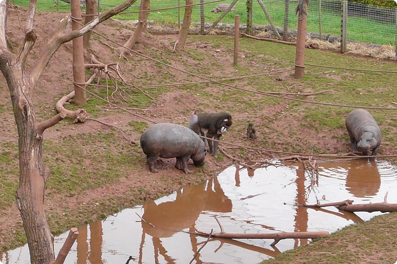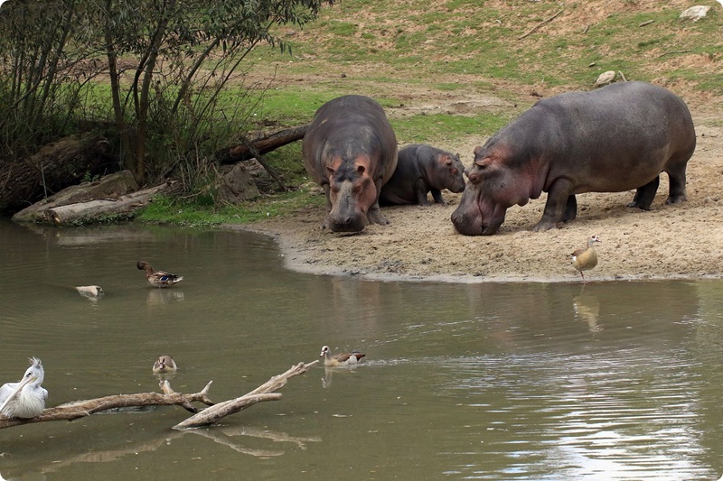 It is also worth mentioning that several zoos have positive experience keeping their Hippopotamuses in exhibits with large lakes where they coexist together with different species of waterfowl, i. e. Parque de la Naturaleza de Cabárceno, Longleat or Greater Vancouver Zoo just to name a few which combinations have not always been mentioned in the list of mixed-species exhibits.