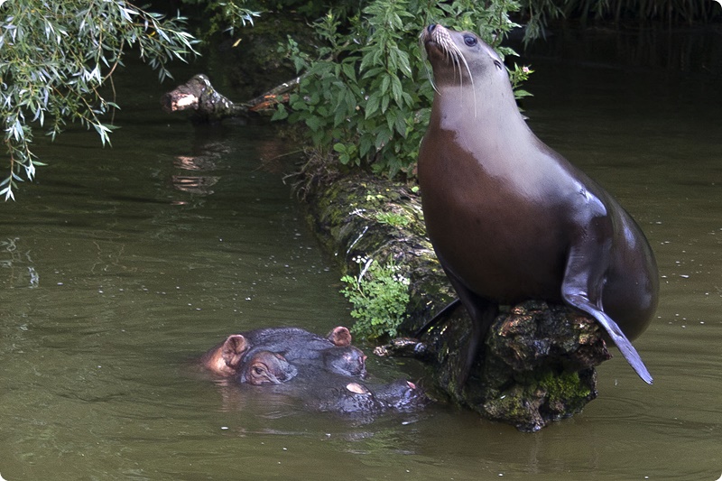 In regard to species combinations – but not counting fish species – Pygmy Hippopotamus has been socialized with 107 and Hippopotamus with 101 different species.