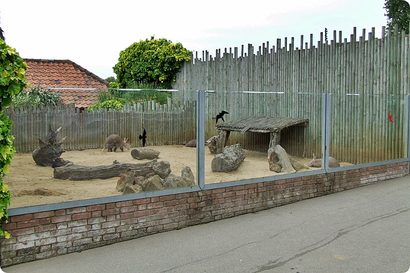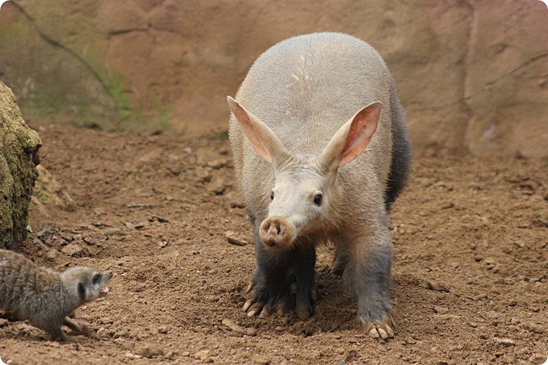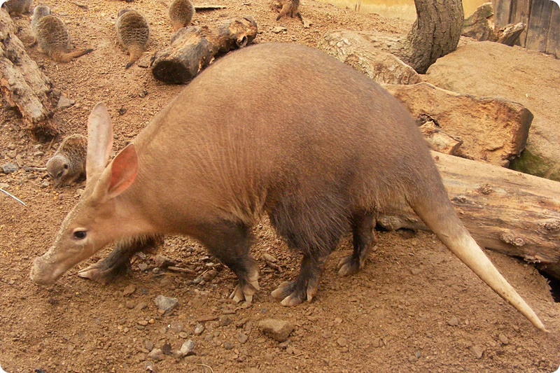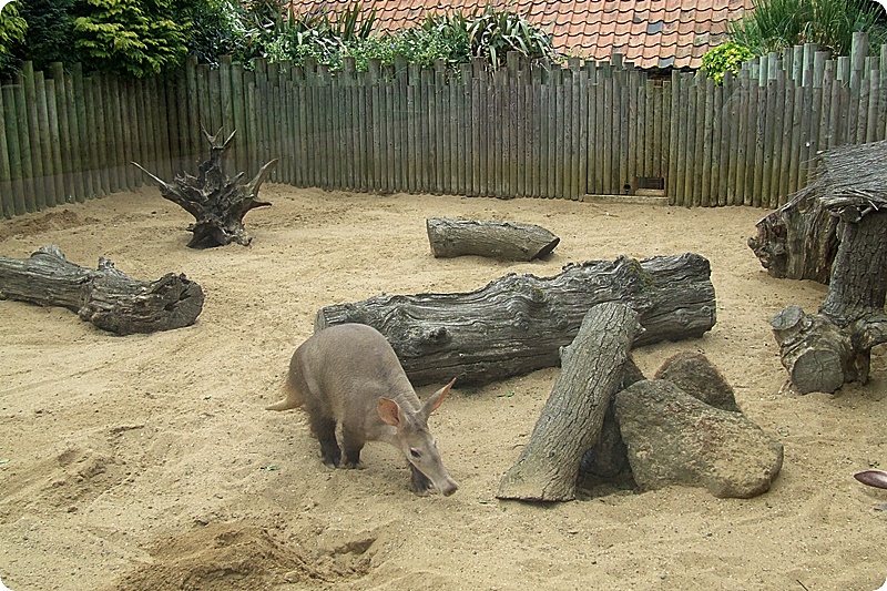 20 years ago, in 55% of the cases Aardvarks mostly socialized with different species of bats. Zoo Saarbrücken was an early example where Aardvarks and Egyptian Fruit Bats were kept together in a relatively small, 25 m² enclosure since 1978. The new zoo in Poznan had the same combination with the addition of Tokay Geckos in a smaller, 22 m² exhibit since 1995 (HAMMER 2002).