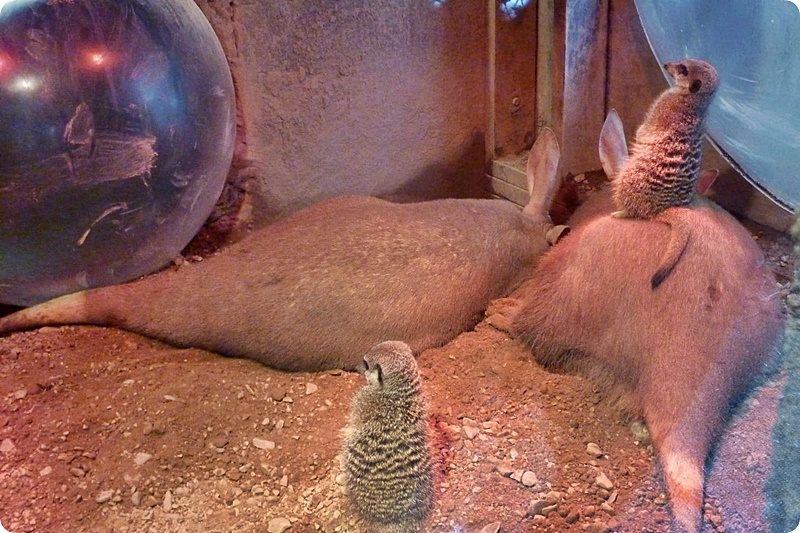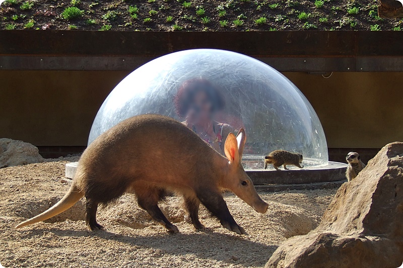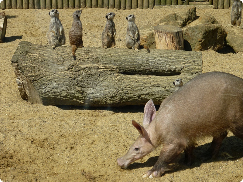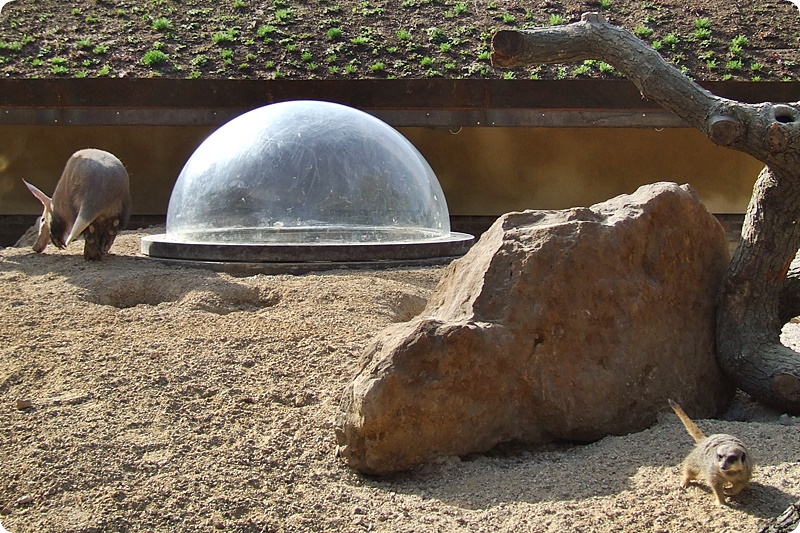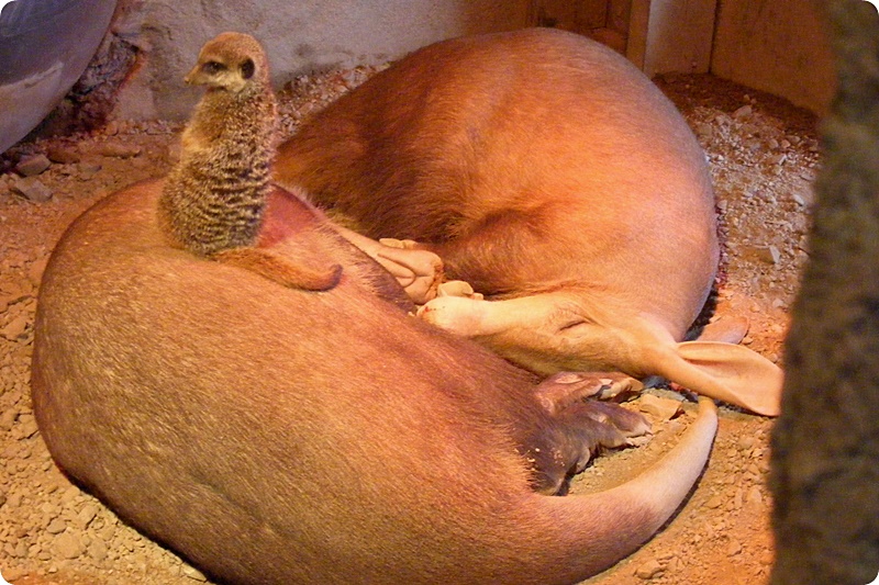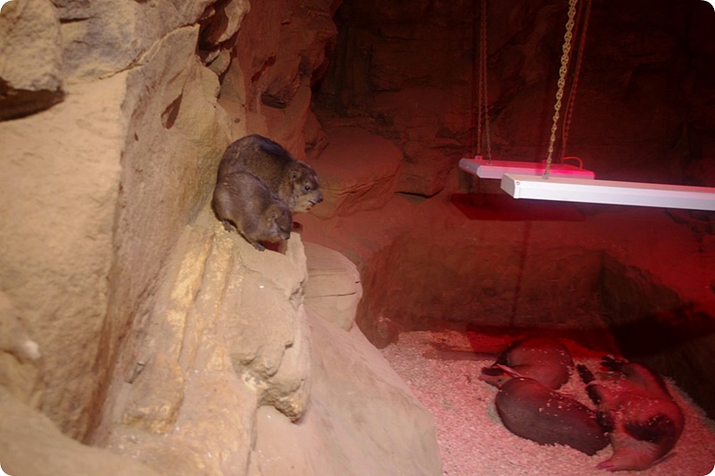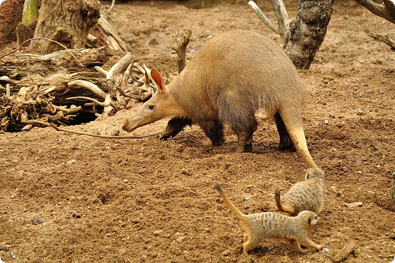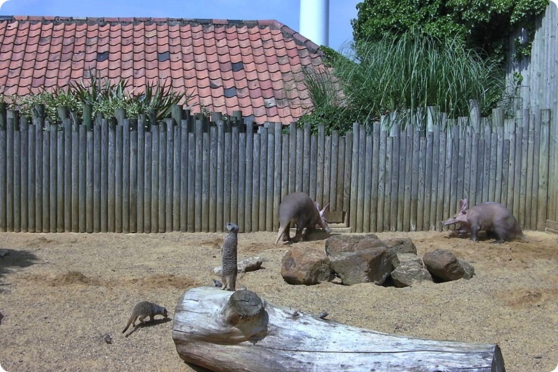 In Colchester Zoo – the exhibit also called Aardvark Burrow – was previously written out for visitors that disused Aardvark holes are used for refuge by many different animals so they are vital keystone species in the savannah ecosystem. Currently the Aardvarks here are sharing their enclosure with Rock Hyraxes (Procavia capensis).