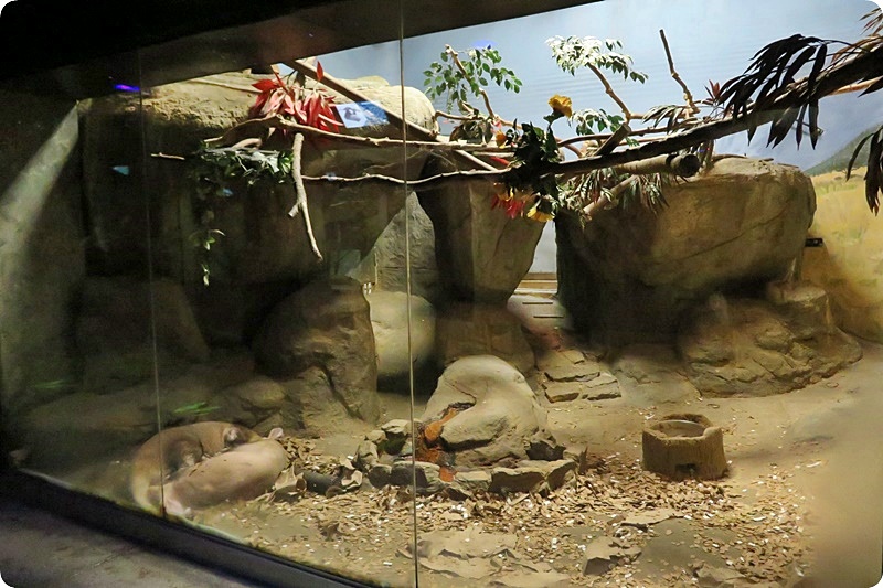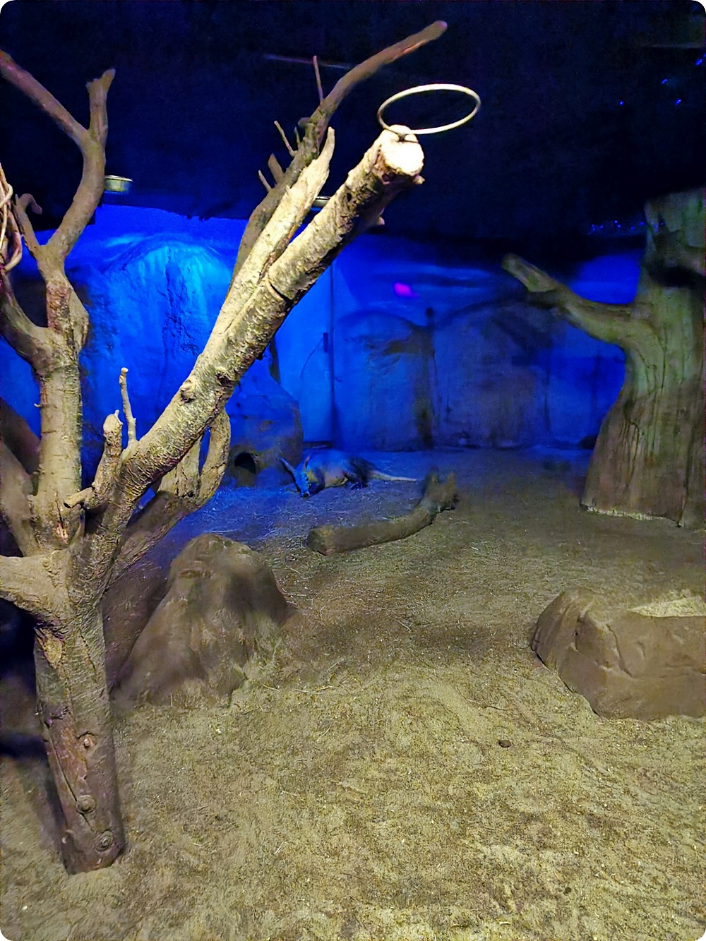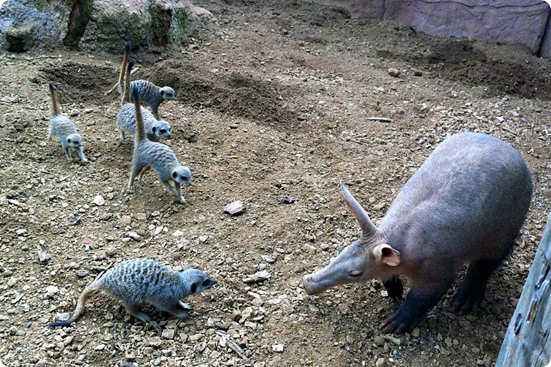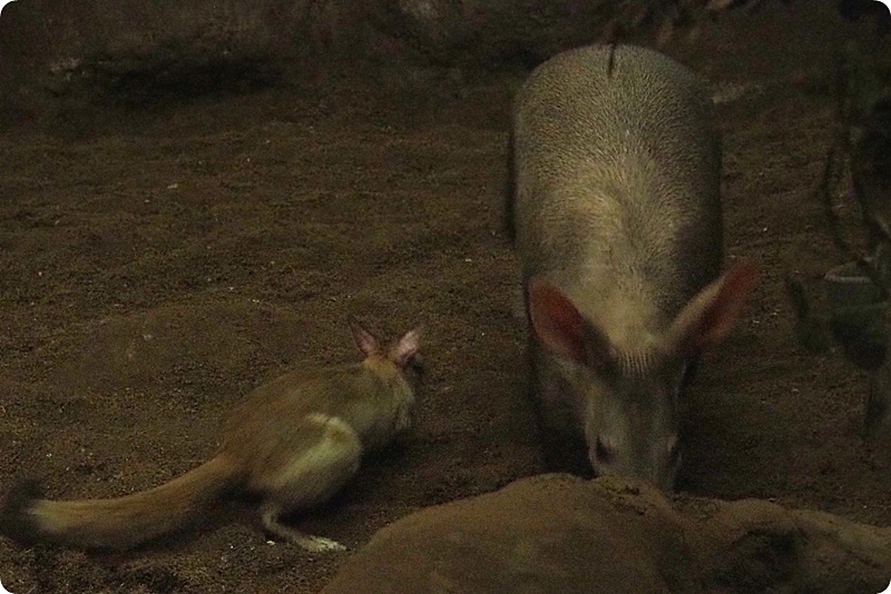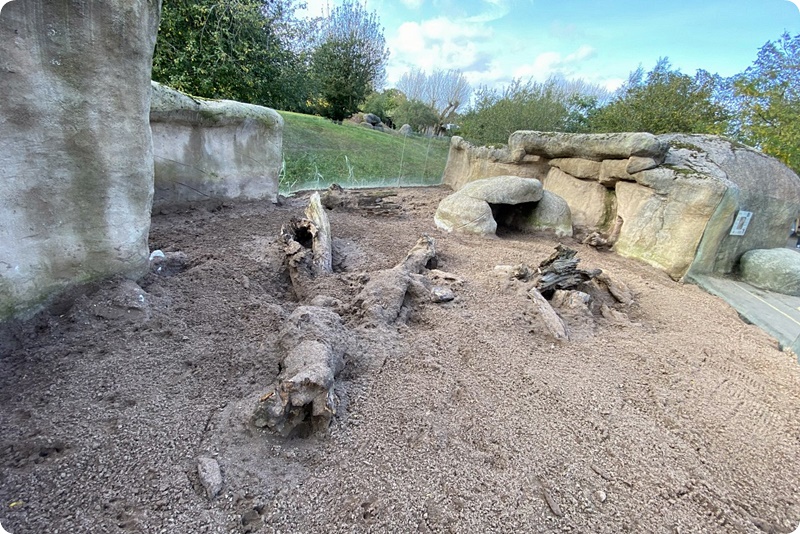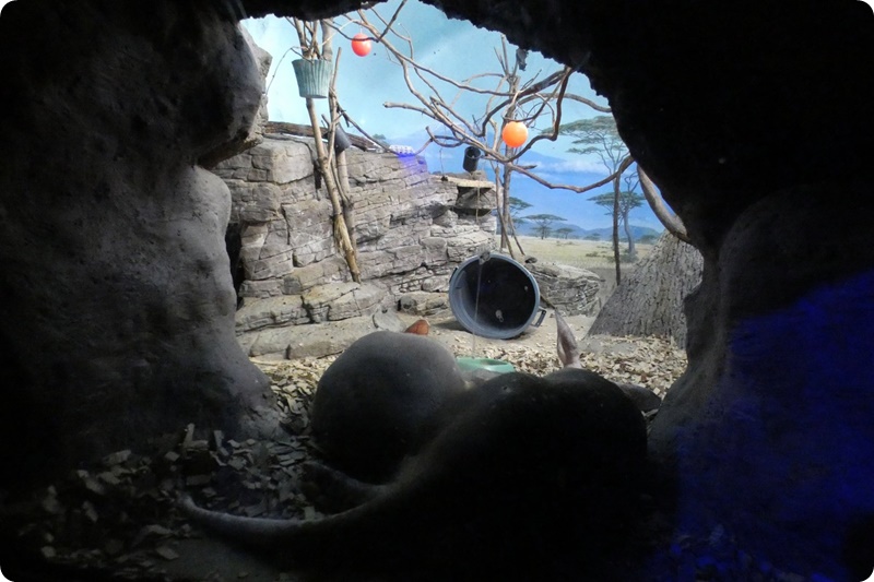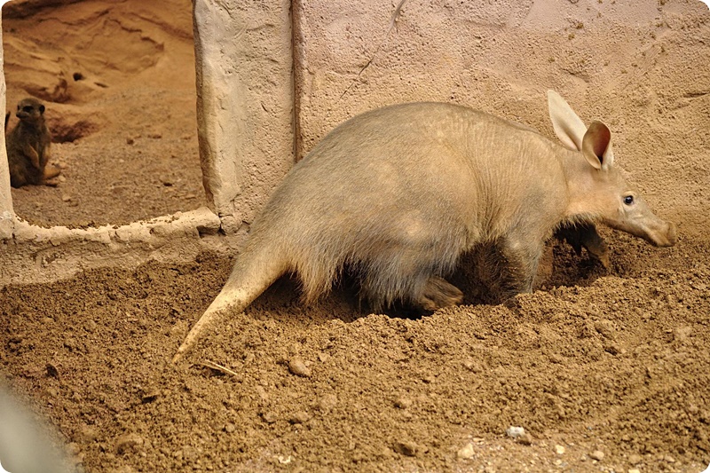 In Colchester Zoo – the exhibit also called Aardvark Burrow – was previously written out for visitors that disused Aardvark holes are used for refuge by many different animals so they are vital keystone species in the savannah ecosystem. Currently the Aardvarks here are sharing their enclosure with Rock Hyraxes (Procavia capensis).