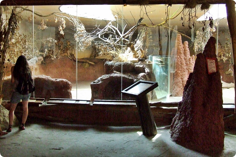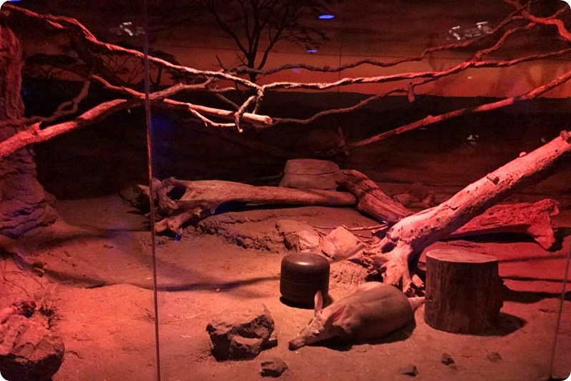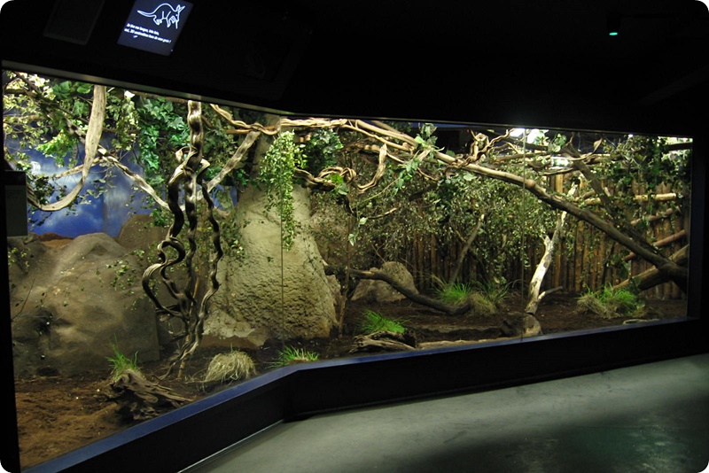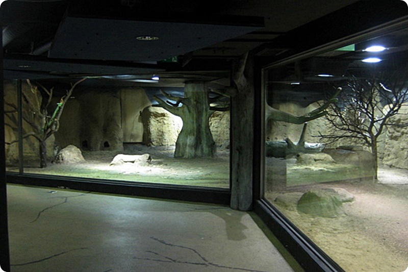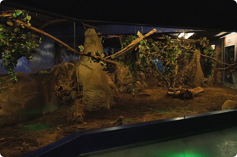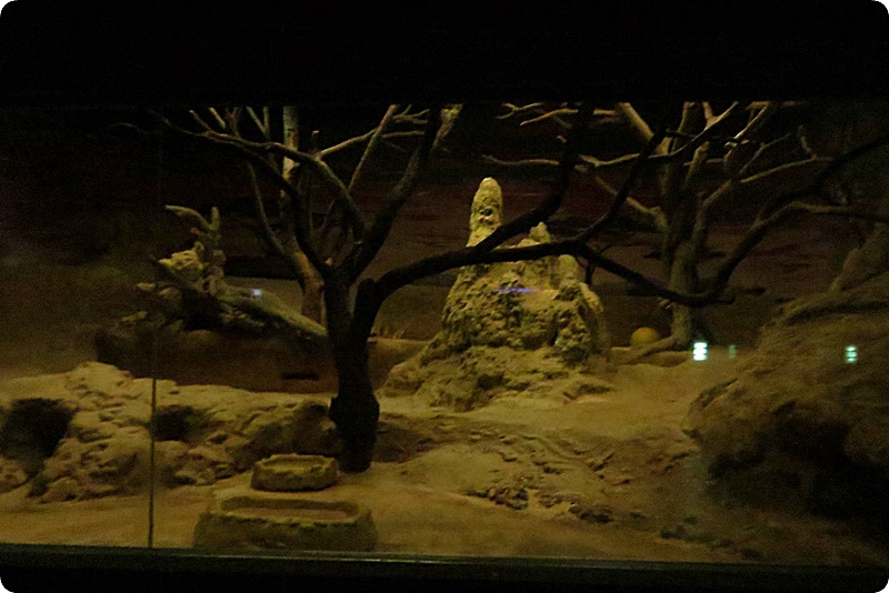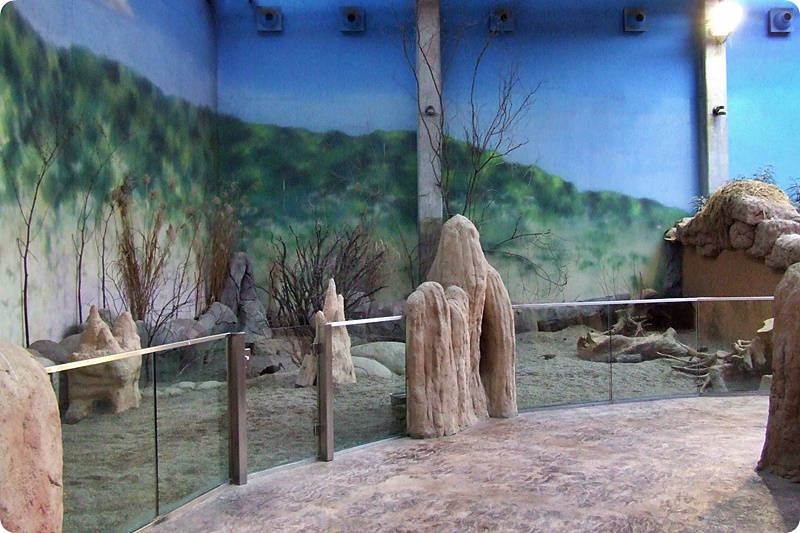 In zoo environment with reference to commensal species which utilizing Aardvark burrows the most perfect example is a smaller section of the Savannah exhibit in Bioparc Valéncia, where the naturalistic replicas of huge termite mounds of a South African termite species, Macrotermes natalensis allow a large community of different species to make their home. These artificial termite mounds at the zoo are shelters to a large number of animals that either live underground or use them as burrows or as a source of food. In Aardvark Burrow exhibit visitors can see many nocturnal animals in neighbouring enclosures. Previously, beside the Aardvark some of the species in this area were included Cairo Spiny Mouse (Acomys cahirinus), Gambian Rat (Cricetomys gambianus), Cape Porcupine (Hystrix africaeaustralis), Common Dwarf Mongoose (Helogale parvula), Bat-eared Fox (Otocyon megalotis) and Nile Monitor (Varanus niloticus). Currently Naked Mole Rat (Heterocephalus glaber), Ball Python (Python regius) and Central African Rock Python (Python sebae) are also exhibited in this area of the zoo. In neighbouring areas enclosures for Spotted Hyenas (Crocuta Crocuta) and Common Warthogs (Phacochoerus africanus) are also created. Many of these species or one of their closely related taxa were also mentioned beforehand in reference to species that use Aardvark burrows in nature. Beforehand Aardvarks shared their exhibit with Bat-eared Foxes and were rotated with warthogs in their outdoor enclosure in Bioparc Valéncia. Worth mentioning that Zoo Praha also rotated their Aardvarks with Red River Hogs (Potamochoerus porcus) in one of the outdoor enclosures adjoining the African House.
