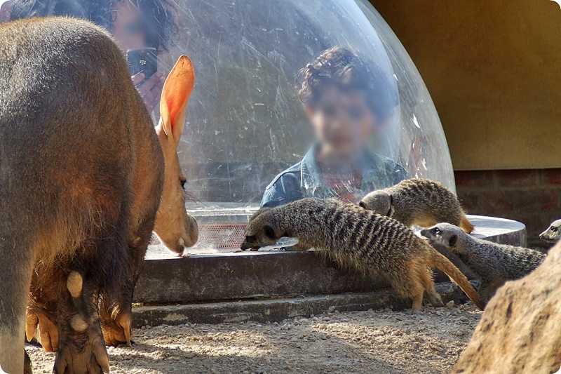 Housing diurnal mongoose species – such as Common Dwarf Mongoose, Common Cusimanse and Meerkat – with nocturnal species, such as Aardvarks, means that animals generally use the exhibit at different times of the day. As mentioned beforehand many zoological institutes have tried this type of combination, where primarily Meerkat is housed together with Aardvark. In Philadelphia Zoo Meerkats had climbing structures and hollowed logs the Aardvark did not have access to or fit into, furthermore, a plexiglass wall with a mongoose-sized access divided the space so that the Meerkats had an area of their own (HAMMER 2002). Aardvarks and Meerkats have been exhibited together; however, Meerkat aggression towards the Aardvark was observed over food and space. With time, these conflicts resolved themselves when the Aardvark learned to avoid the small carnivores (AZA Small Carnivore TAG 2011). This combination in Philadelphia Zoo worked well for many years and the institution successfully bred both species in this setup. The mix worked because Meerkats had some spaces they could go to avoid the Aardvarks when they wanted to, furthermore Aardvarks were fed in a separate area so Meerkats would not steal the food or act aggressively towards them (STERN 2022, pers. comm.). In Blackpool Zoo the only reason they stopped this cohabitation was because the enclosure was not designed for Meerkats, only Aardvark and they were able to get into wall cavities, the cost of stopping this was too high (WOOLHAM 2022, pers. comm.).