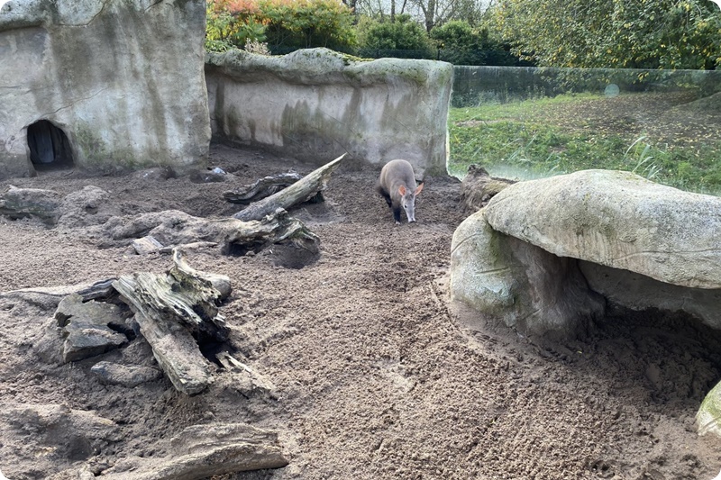 Aardvarks were successfully mixed with Congo Blue Duikers in the Burgers’ Bush in Arnhem. A male duiker was really interested in the Aardvarks and so were the Aardvarks. There was a small corner in the exhibit which was not accessible for the Aardvarks to give the duiker a safe place to sleep (DAMEN 2020, pers. comm.) This combination was stopped because of the behaviour of the duiker towards visitors as he was too friendly (IDOE 2022, pers. comm.). It is worth mentioning that there are several free-flying birds that live in the Burgers’ Bush so many of them can enter into the Aardvark enclosure.