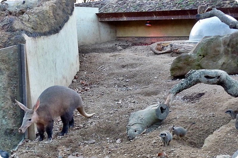 Many of the listed mixed-species exhibits with Aardvarks take place in nocturnal houses. Due to their relatively big body size and not least because of their willingness to move, Aardvark is among the species that are far better kept conventionally with the possibility of using an outdoor enclosure. Fortunately, there has been a trend in Europe for some years now to no longer keep this species in nocturnal houses. The limited space in a noctarium simply cannot provide the necessary enclosure sizes for them. For some years, these animals have been kept conventionally in the USA and in the United Kingdom with great success (AMEND 2018). This “new type” of exhibitry for them means that the earlier classic examples of socialize them with other night-active and smaller species such as galagoes or bats are not more possible, instead of this in many cases they can be kept together with diurnal mongooses such Meerkat which is/was the situation in ZSL London and Whipsnade Zoo, Chester Zoo, Blackpool Zoo and Africa Alive Zoological Reserve in the United Kingdom. However, we must also note that in reference to the activity pattern Aardvark is nocturnal with only occasional afternoon activity during winter in areas where nights get cold. They often remain active all night and may only return to their burrows at dawn, but they rarely stay above ground after sunrise (TAYLOR 2011).