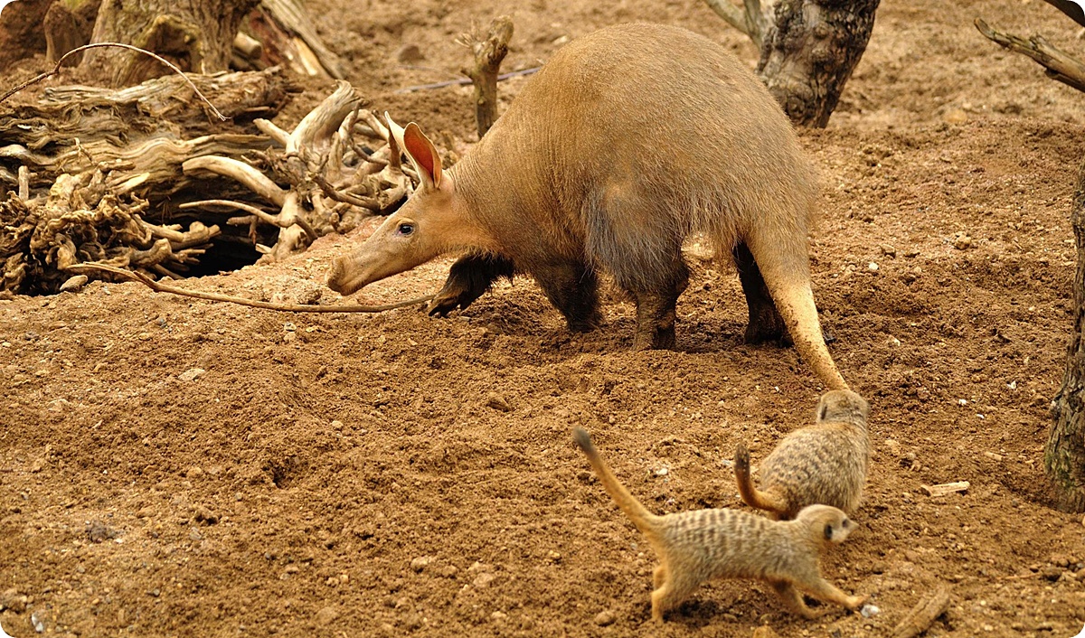 In the introduction of mixed-species documents dealing with Mongooses (Herpestidae) and Hippopotamuses (Hippopotamidae) mutualism, as a possible didactic concept in creation of multi-species enclosure was mentioned. Now, in case of mixed-species exhibits with Aardvark (Orycteropodidae) it is worth emphasizing the commensalism as a potential didactic concept.