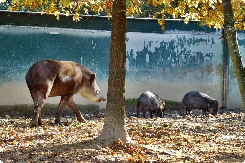 Within the narrower meaning of the mixed-species exhibits this document deals with three species of Peccaries.