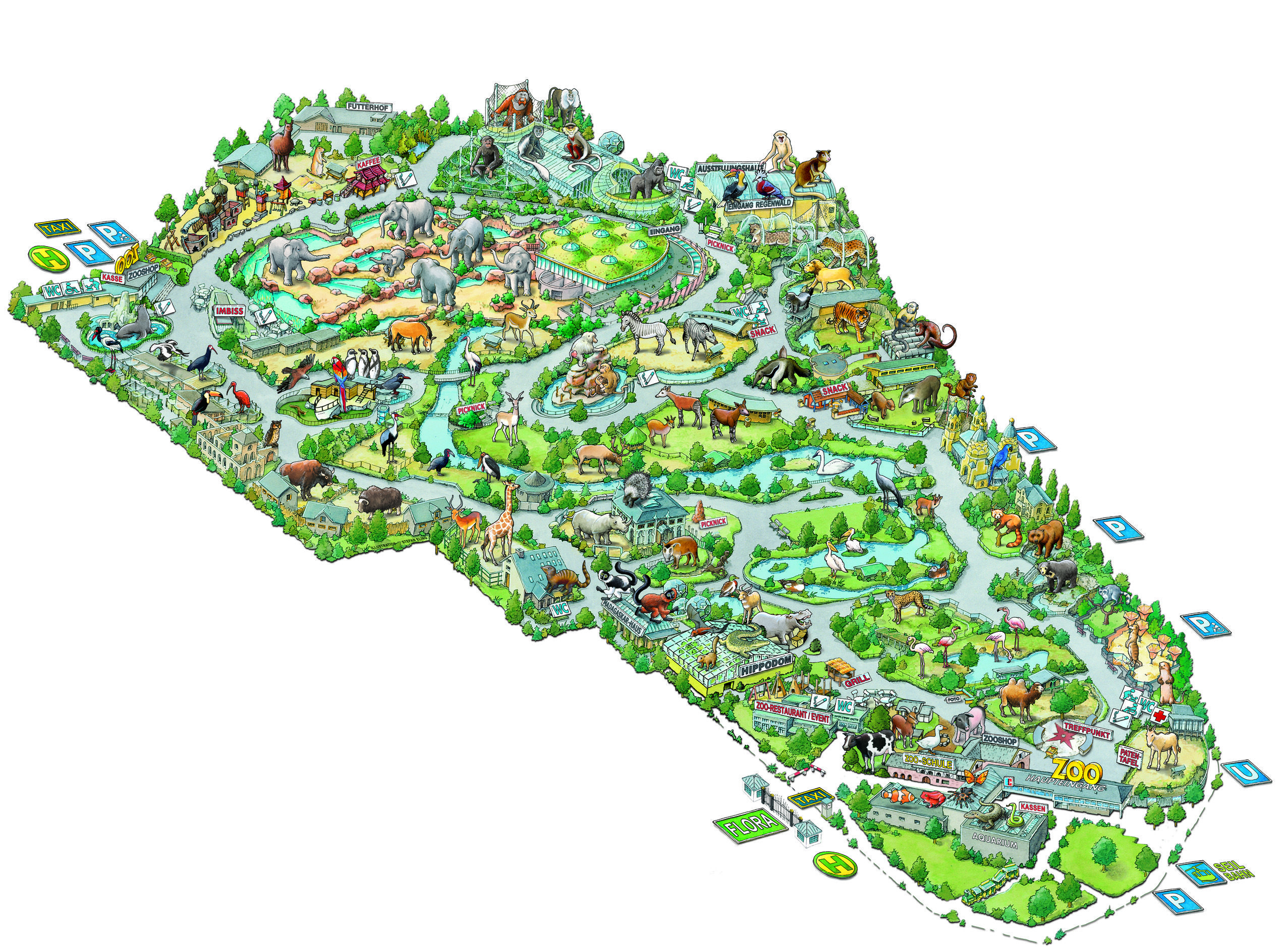 A Kölni Állatkertet bemutató leírás következő részében a patások és emberszabásúak bemutatói, az Esőerdő-ház és az Elefántpark kerül ismertetésre.