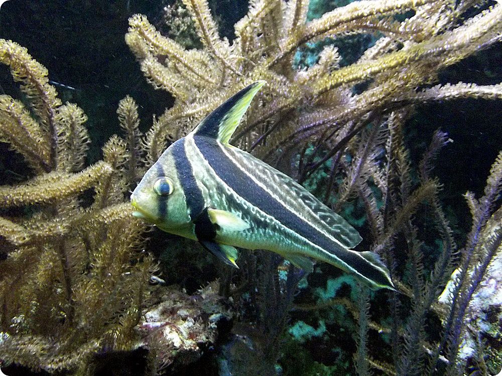 Különleges megjelenésű tengeri halfaj az árnyékhalfélék közé tartozó Equetus lanceolatus