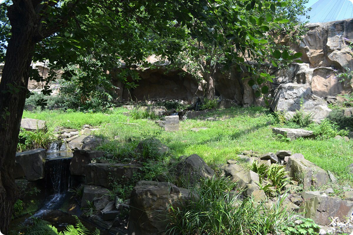 A hópárducok kifutója egy darabka Himalája: a beültetett növények, a kis patak, a tavacskák és a sziklás háttér mind-mind az állatok eredeti hazáját idézik. A felvételen szinte teljesen láthatatlan marad a nyári melegben a hűs sziklabarlangban pihenő nagymacska. A hópárducok és a perzsa leopárdok kifutóira néhány nagyméretű betekintő üvegablakon át lehet benézni, így kevesebb stressz éri az állatokat.