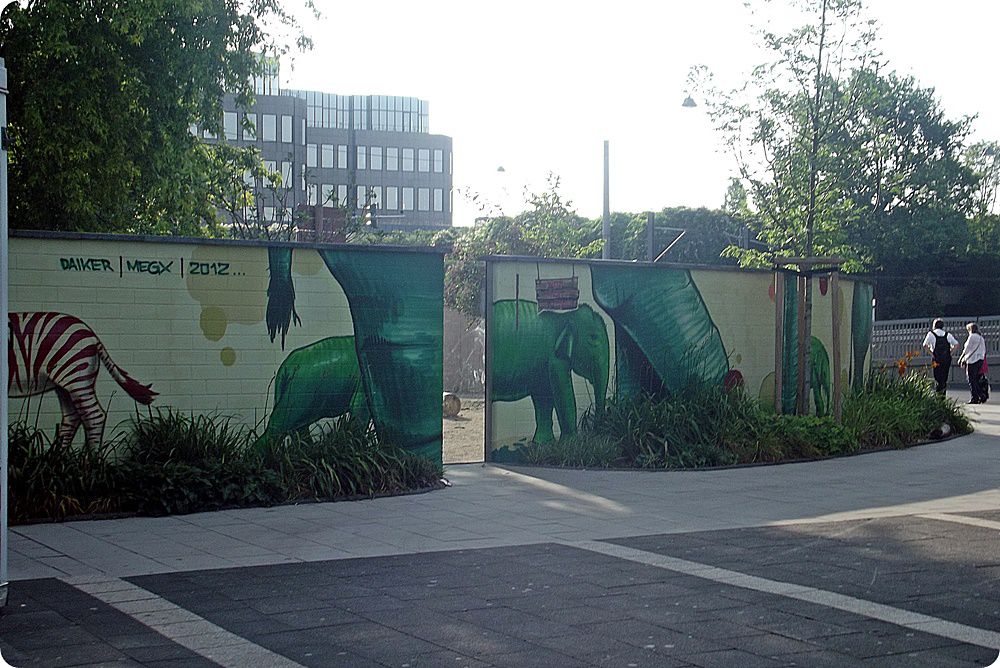 A Hippodom épülete, az állatkert tematikájába illő szemetessel