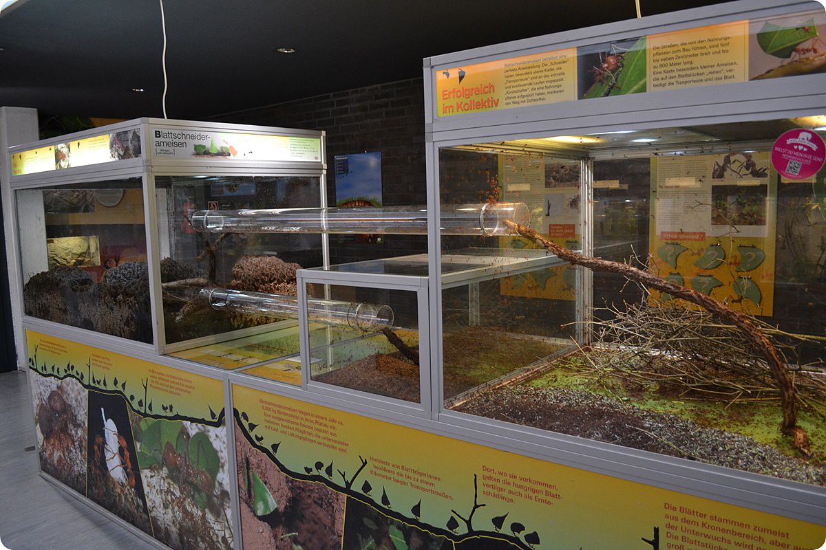 Az érdeklődők egy levélvágó hangyakolónia (Atta sp.) mindennapjaiba is betekintést nyerhetnek.