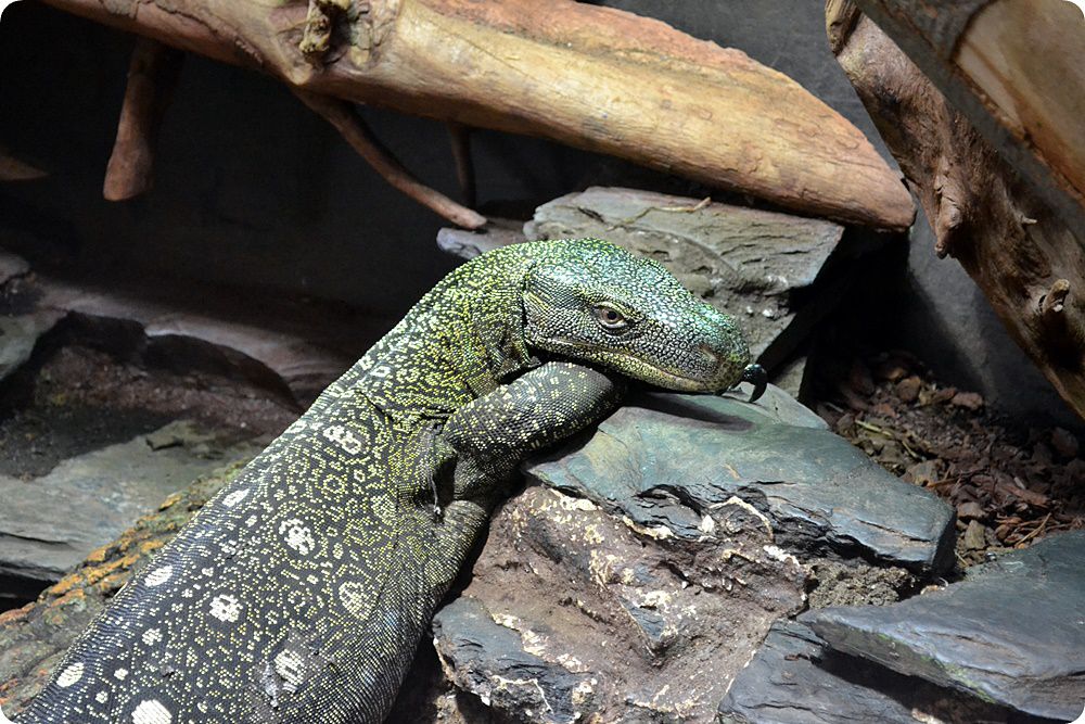A Kölni Állatkert egyedülálló, 11 fajból álló varánuszgyűjteménnyel rendelkezik, a gondozott fajok egy része csupán két-három európai állatkertben látható jelenleg. A képen az Új Guineában őshonos, endemikus pápuavaránusz (Varanus salvadorii) látható, mely a sziget legnagyobbra növő hüllőfaja.