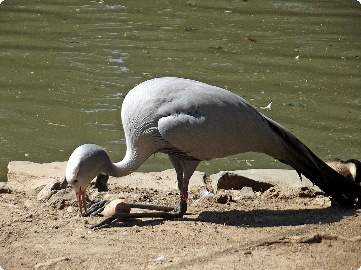 Tojását igazító paradicsomdaru (Anthropoides paradisea). A fajt az európai állatkertek Európai Törzskönyvi Program (ESB) keretein belül tartják és tenyésztik. Bár a képen látható fészekalj megsemmisült (feltehetően a szülők tapasztalatlansága és a megfelelő fészek hiánya miatt), egy évvel később, 2015-ben a kölni darupár sikeresen felnevelt egy fiókát.