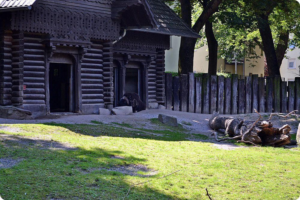 Az 1885-ben átadott három Szarvasmarha-ház svájci erdészlakok mintájára épült. Az eredetileg kilenc (épületenként három) faj bemutatására szolgáló állatházak első átalakítására 1958-ban került sor, amikor a fajszám lecsökkentése és a kifutók összenyitása három, a korábbiaknál jóval nagyobb alapterületű férőhelyet eredményezett. Később az így létrejött három kifutóból is megszüntettek egyet. Ma amerikai bölények (Bison bison bison) és a képen látható grönlandi pézsmatulkok (Ovibos moschatus wardi) lakják az épületeket és a hozzájuk tartozó kifutókat.