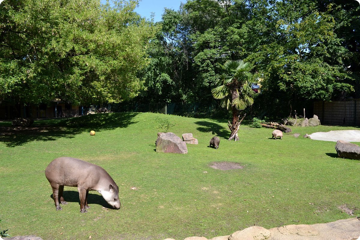 A felújításra váró, műemlék Dél-Amerika Házzal éles ellentétben állnak a kontinens élővilágát bemutató komplexum további férőhelyei, melyek az esetek többségében modern, néhány éves férőhelyek. A sörényes hangyászok (Myrmecophaga tridactyla) bemutatóját 2012-ben, míg a dél-amerikai tapírok (Tapirus terrestris) és kapibarák (Hydrochoerus hydrochaeris) a képen látható közös kifutóját 2008-ban adták át. Ebben az évben érkezett meg az állatkert hím tapírja, majd két évre rá egy nőstény egyed is Kölnbe költözött. A tapírok időközben szaporodtak is, a szülőpár egyik, időközben felnőtt utóda ma is az állatkert lakója.