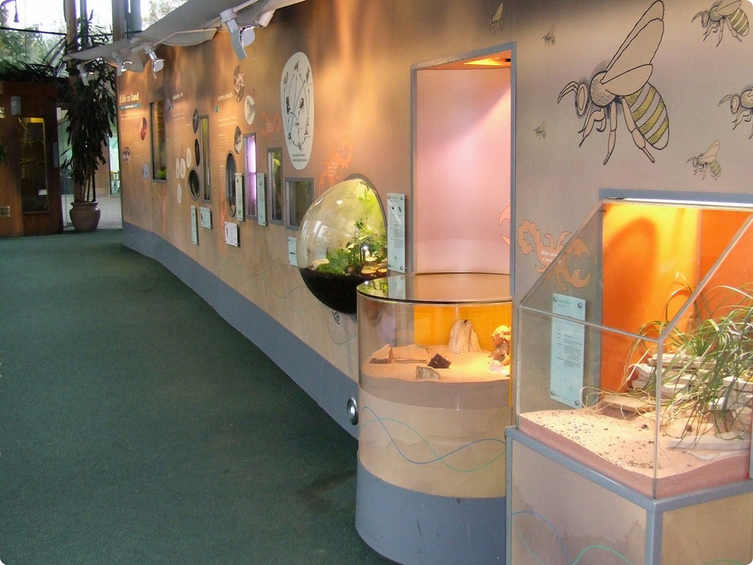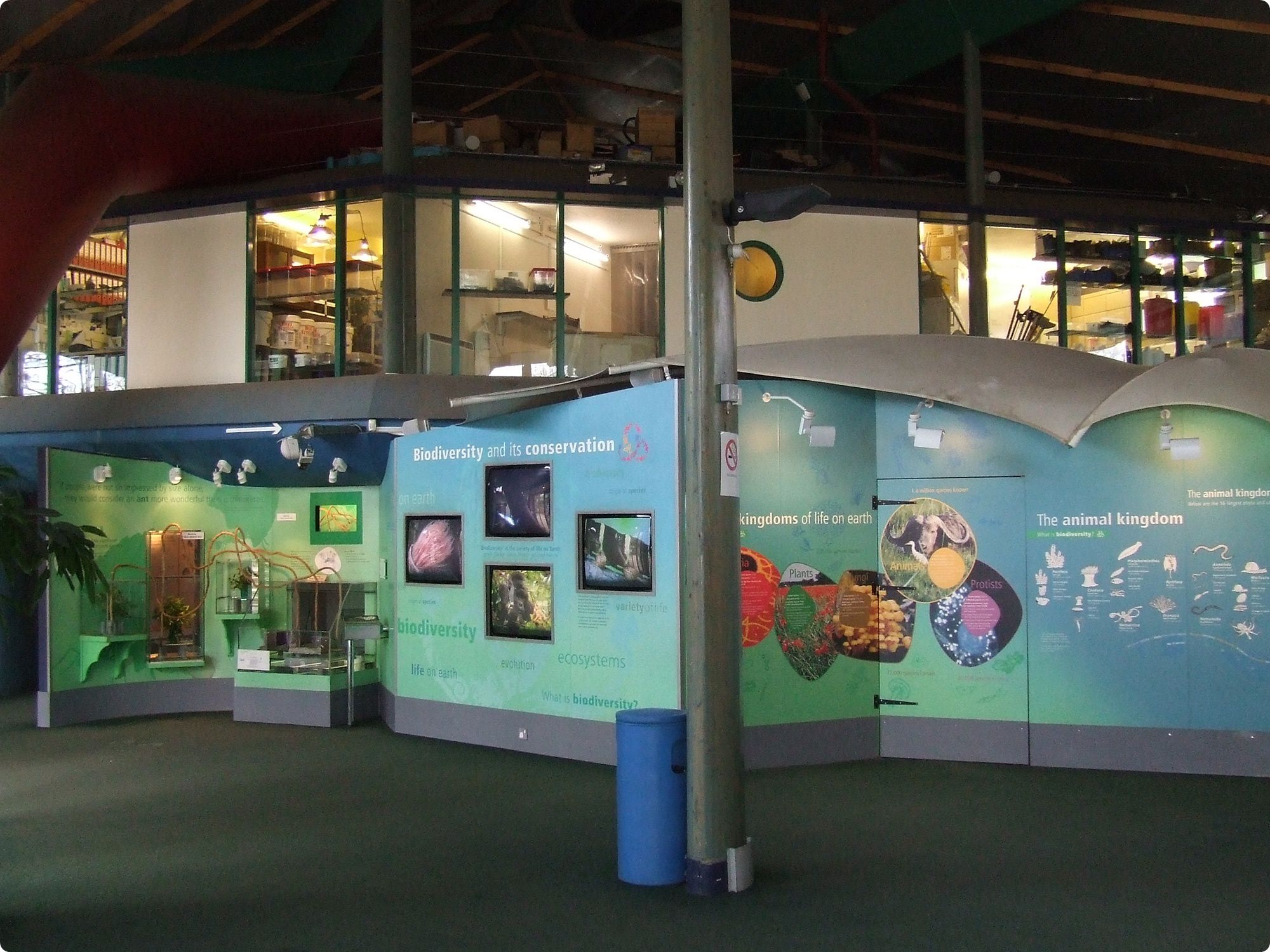 Az épületben látható állatbemutatók szín- és formagazdagsága egyaránt a biodiverzitást hivatott ábrázolni, mely vonzóbbá teszi a kiállítást a gyermekek számára. Az emeleten a személyzeti szobák és laboratóriumok láthatóak.