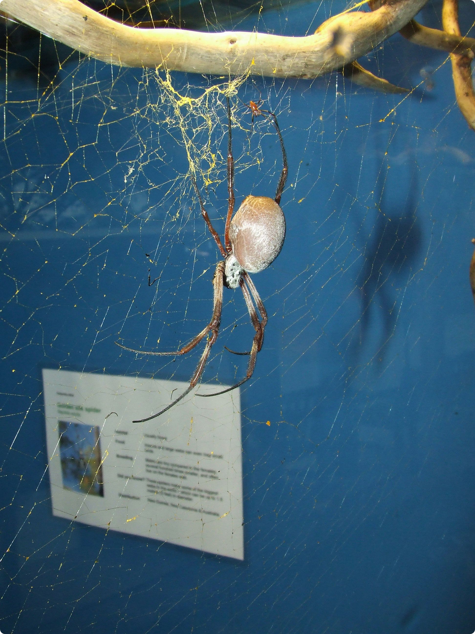 A felvételen a Nephila edulis nevű pókfaj látható. A Nephila-fajok hálója a legnagyobbak közé tartozik, átmérője akár másfél méter is lehet. A hálón, a hatalmas nőstény utolsó járólábpárjainak végén az apró termetű hímet is megpillanthatjuk.