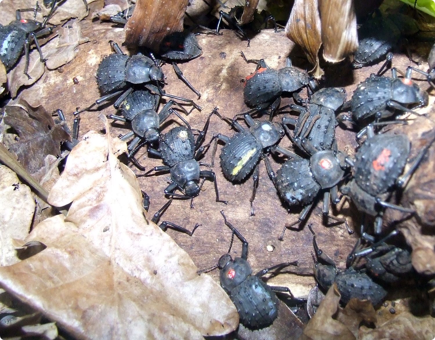 Jobbra: A Seychelle-szigetek közé tartozó Fregate gránitszigetén őshonos, gyászbogárfélék családjába (Tenebrionidae) tartozó óriás bogárfaj, a Polposipus herculeanus szintén kritikusan veszélyeztetett, melynek megmentésére 1996-ban alakult tenyész- és kutatási program a ZSL gerinctelenek védelmére szakosodott egysége (Invertebrate Conservation Unit) részéről. Napjainkban már Európai Fajfenntartó Tenyészprogrammal (EEP) is rendelkezik a faj, melyet szintén a ZSL koordinál. A project a sziget két további endemikus fajára, egy szárazföldi csigafajra, a Pachnodus fregatensis-re, valamit a legnagyobb ezerlábúfajra, a Sechelleptus seychellarum-ra is kiterjed. A három fajt közös terráriumban tekinthetik meg a látogatók.