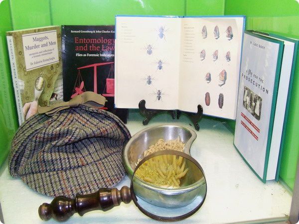 Balra: Az elsősorban a gerinctelenek világát ismertető bemutatórendszer számos témában került kialakításra, amely több oldalról világítja meg az élővilág és az ember kapcsolatrendszereit. A felvételen látható bemutatóban a fémeslegyek vagy dongólegyek (Calliphoridae) közé tarozó nagytermetű, acélkék potrohú faj, a feketearcú dongólégy (Calliphora vomitoria) lárvái figyelhetőek meg nagyítón keresztül. E rovarcsalád fajainak lárvái holt szerves anyagokban, ürülékben, dögökben fejlődnek. A bemutató ismerteti a fajok emberi tevékenységekben való hasznosítását, mint például a kriminalisztikában és gyógyászatban történő alkalmazást, de kitér a rovarcsalád járványos betegségek terjesztésében és a lebontó folyamatokban betöltött szerepére is.
