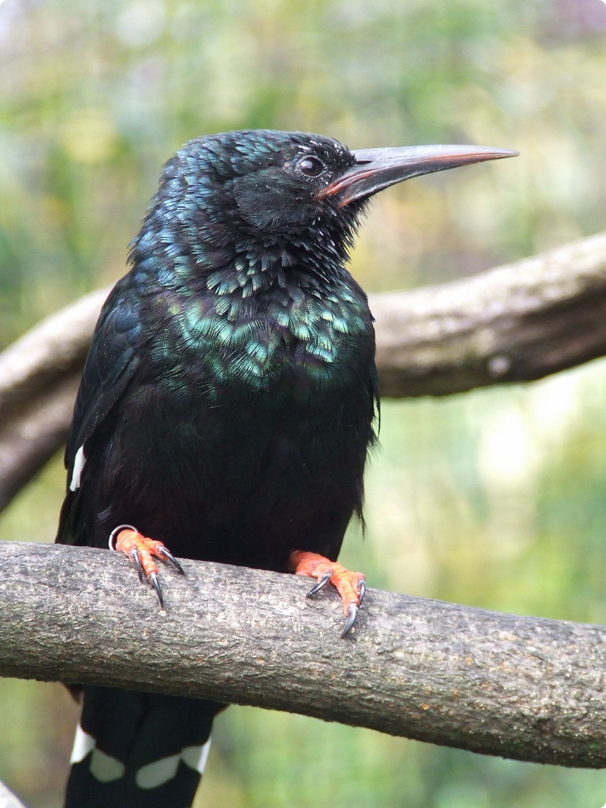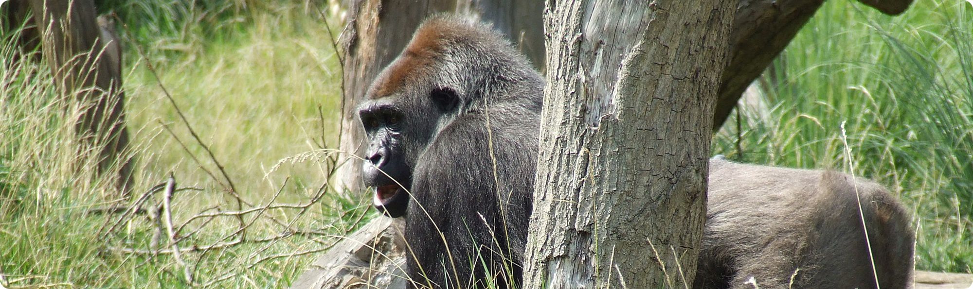 A nyugati síkvidéki gorilla (Gorilla gorilla gorilla) a ZSL természetvédelmi munkájának egyik kulcsfaja (balra). A központi gorillakifutó melletti röpde egy impozáns lakója a piroscsőrű kúszóbanka (Phoeniculus purpureus) (jobbra).