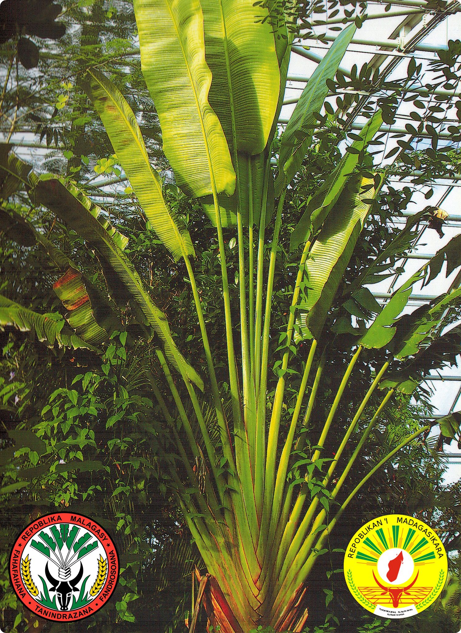 A Madagaszkáron endemikus Ravenala madagascariensis nemzetségének egyetlen faja, s egyben a szigetország nemzeti növényének tekintendő. Ebből kifolyólag a Madagaszkári Köztársaság címerén is a Ravenala leveleit láthatjuk, de az Air Madagascar Légitársaság is e fajt szerepelteti logóján. Érdemes megemlíteni, hogy a korábban bemutatott tradicionális építészet anyagai között is megtaláljuk az Utazók pálmájának leveleit. A bal szélső felvétel forrása © Zoo Zürich