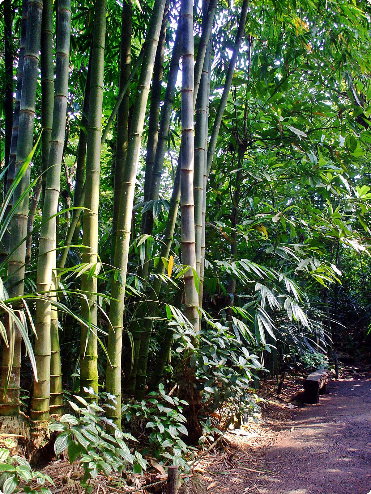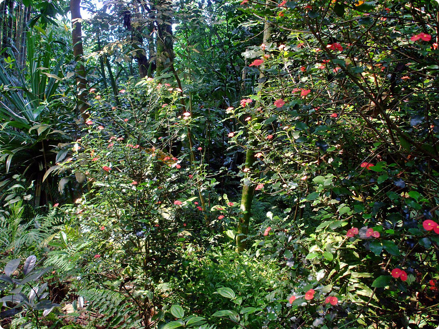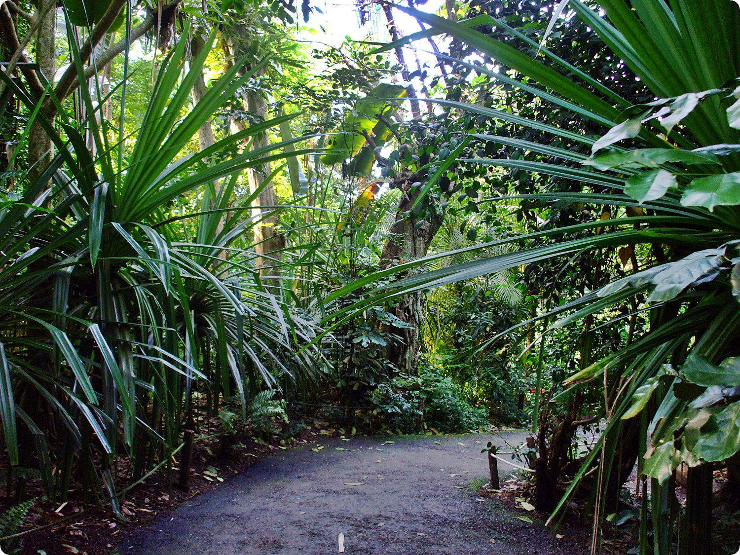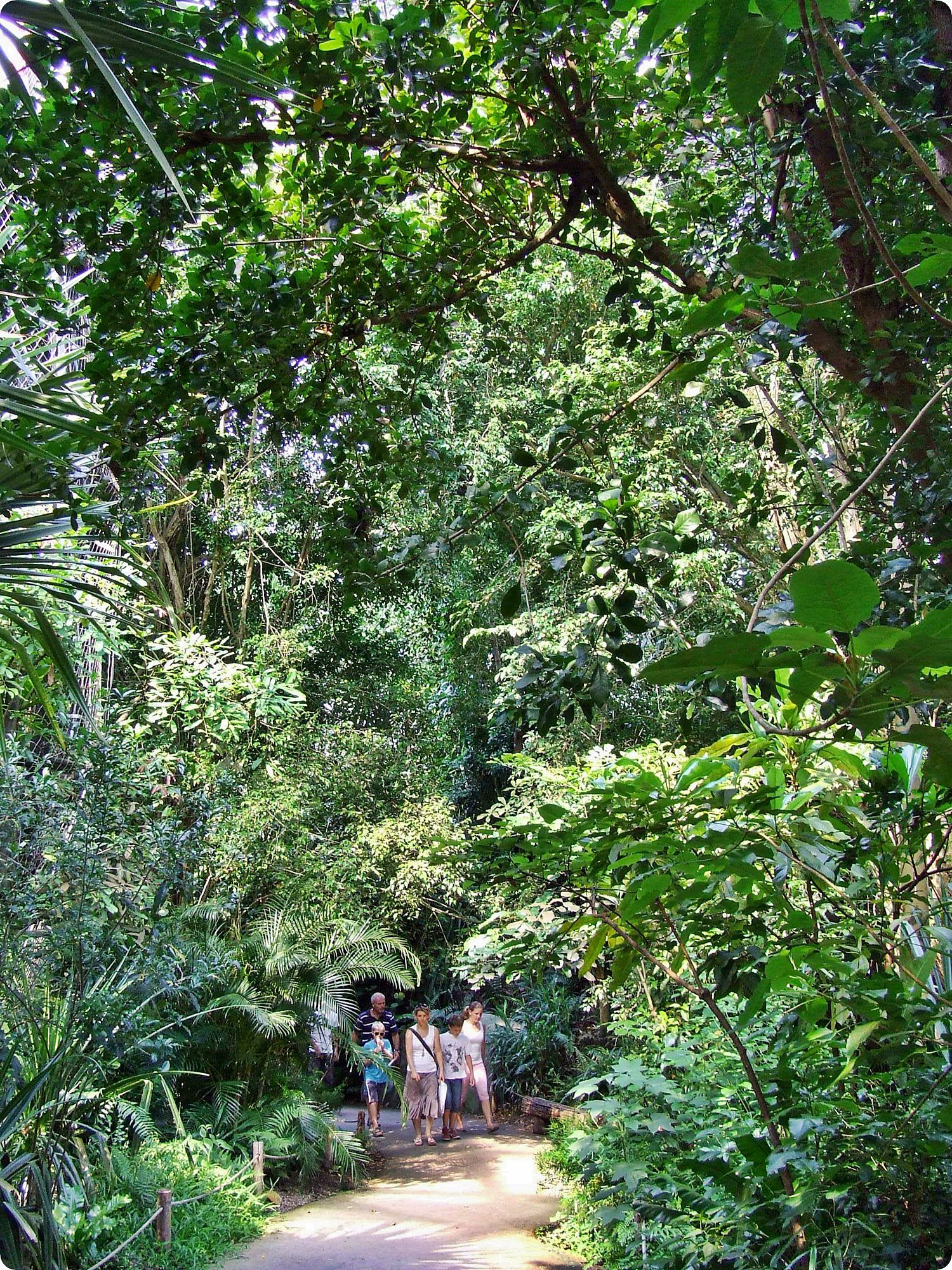 A bemutató egy minél realisztikusabb esőerdei séta hangulatát igyekszik visszaadni, ennek megfelelően a növényzet közé bújtatott fajtáblák tömkelege nem rontja ennek hatását. Érdemes tehát az intézményben megvásárolható részletes útikalauz alapján végigjárni az útvonalat, mely természetesen a bemutató jellegzetes növényfajait is tárgyalja, sőt, mindegyiknél külön helyszín-megjelölést láthatunk a csarnok térképéről, hol is keressük az adott növénycsoport egy-egy tagját.