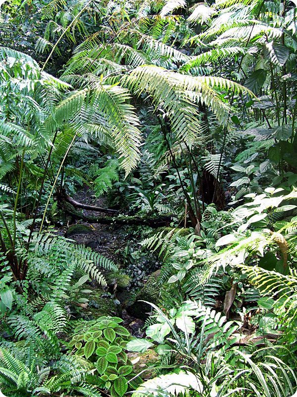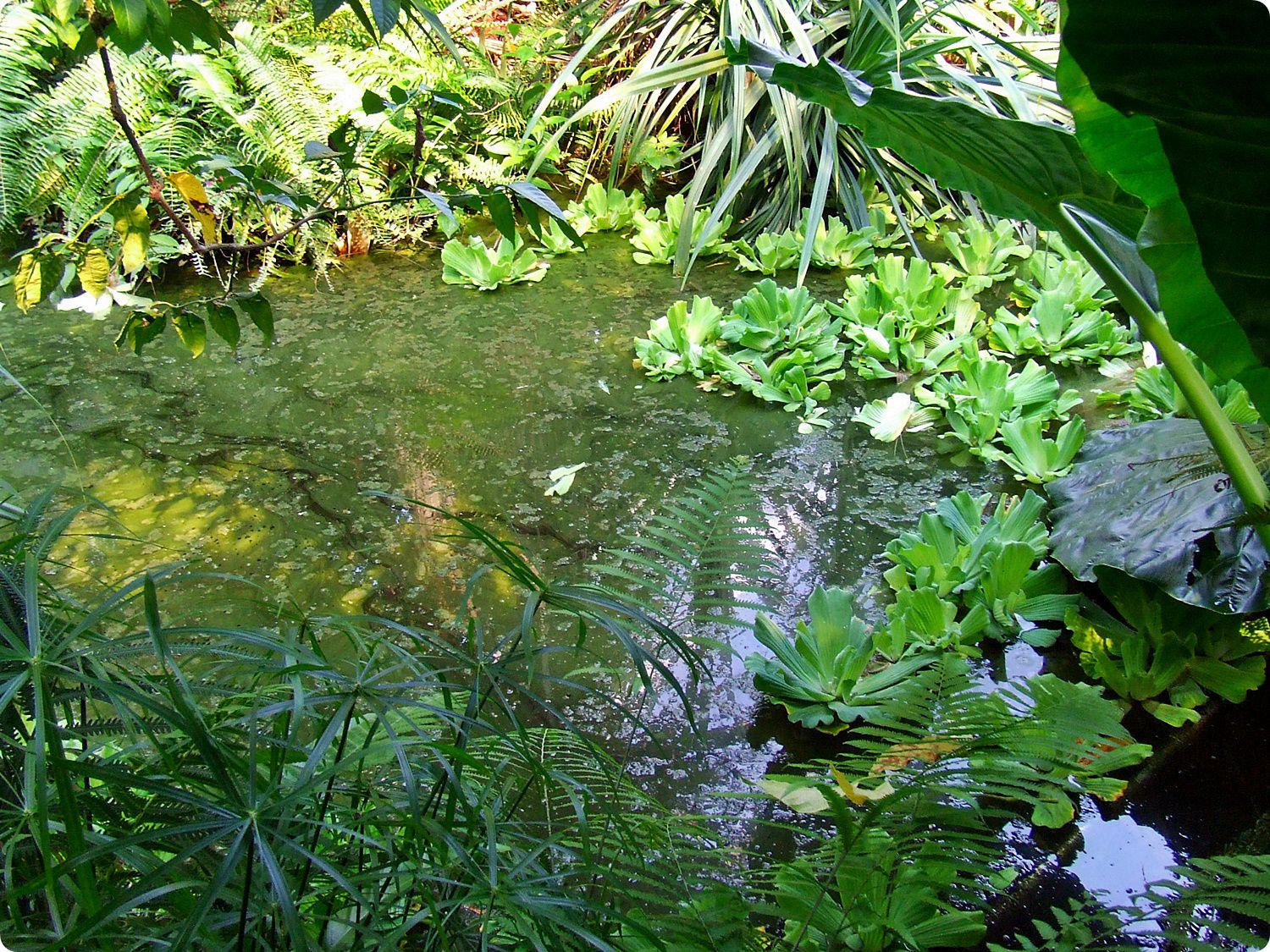 A magas páratartalom számos páfrányfajnak nyújt ideális életteret a mesterséges esőerdőben.