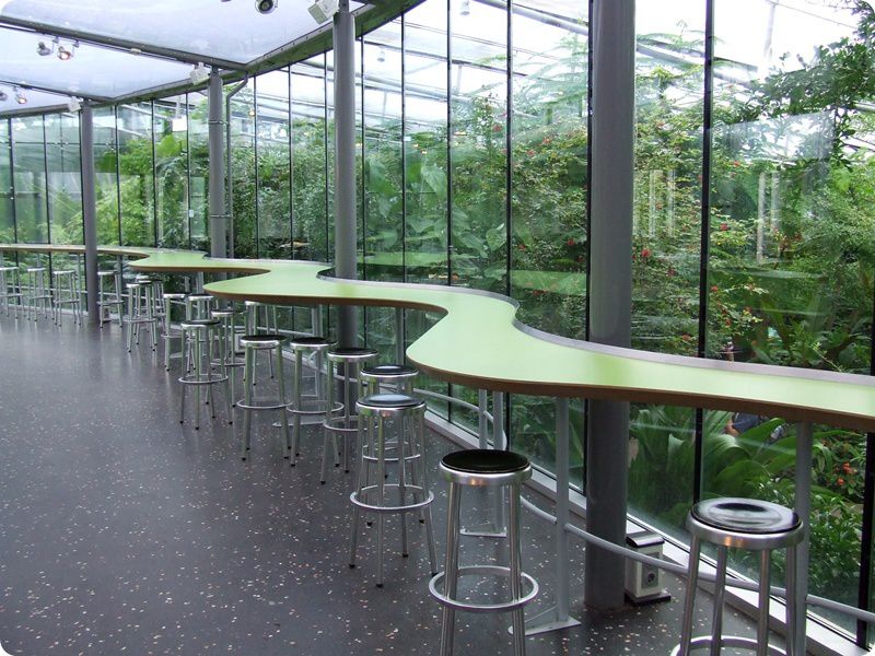 A Lepkepavilon mellett kiépített étteremből nagyszerű panoráma nyílik a bemutató egészére.