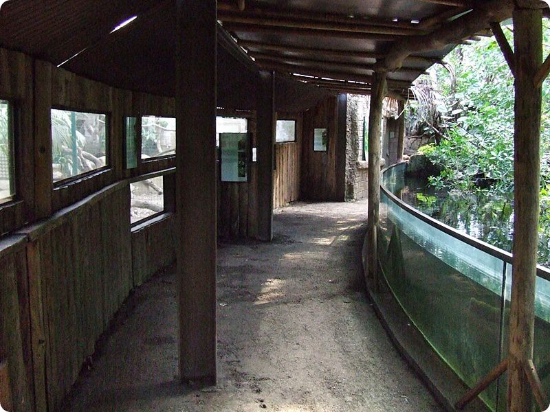 Ezt követően zsilipelhetünk át egy röpdébe, ahol pápaszemes baglyok tekintenek le ránk a lombkoronából, alattuk pedig egy nőstény paka vezeti már félig kifejlődött, nagyobbacska utódját. A röpdét elhagyva medencéjükben nyújtózó Cuvier-törpekajmánok fogadnak bennünket.