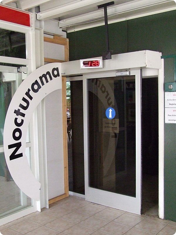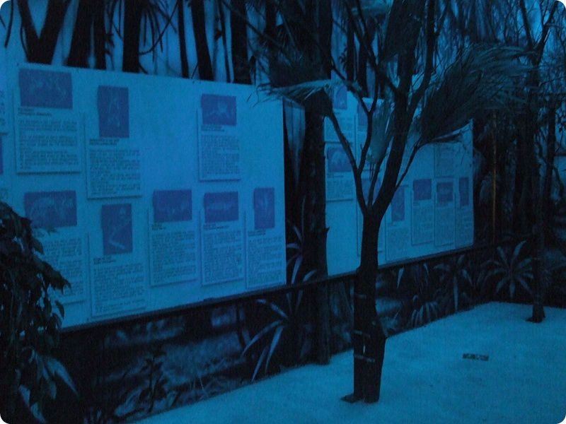 Belépés a Nocturama csarnokába. A jobboldali felvételen látható, falra függesztett nagyméretű fajtáblák afféle összegzésként szolgálnak, hiszen az adott kifutóknál kisebb, külön megvilágítással rendelkező táblák könnyítik meg számunkra az állatok felismerését.