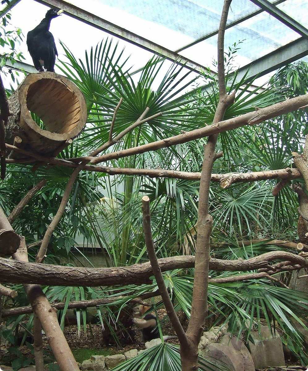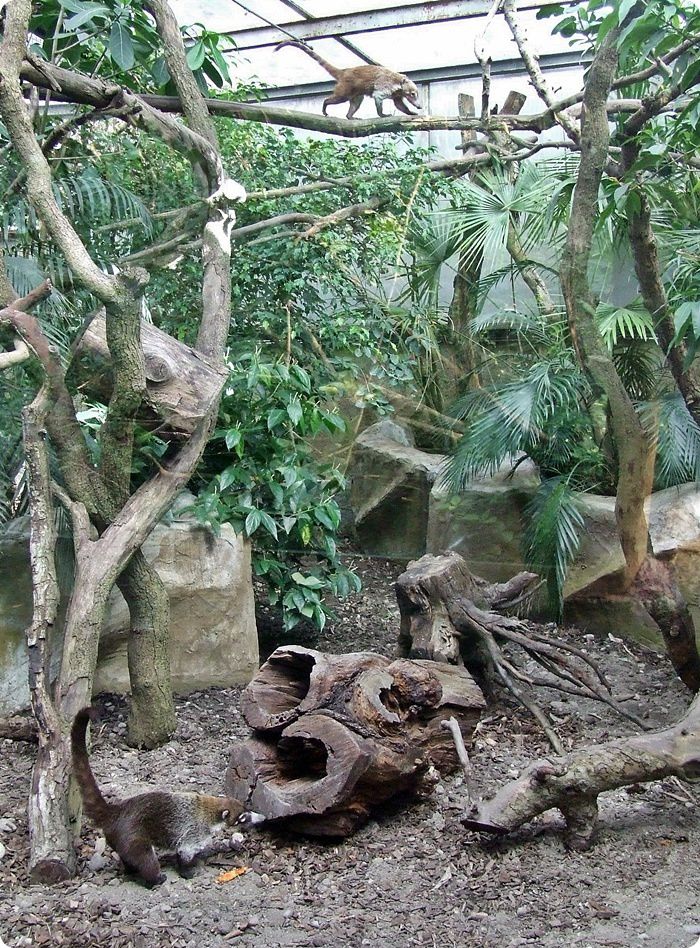 A taira (balra, fent) ritka állatkerti vendég, világviszonylatban is kevés állatkertben találkozhatunk velük. Mivel a fogsági szaporulat ritka, s jelenleg nem veszélyeztetett fajról van szó, kevésbé valószínű, hogy ez a helyzet változni fog a közeljövőben. Az emlőskifutók esetében alkalmazott bemutatástechnika látható, melyekkel szemközt kisebb tavak kerültek kialakításra a trópusi csarnok külső részén (jobbra, lent). Tamandua (balra lent), rózsás kanalasgém (jobbra, fent)