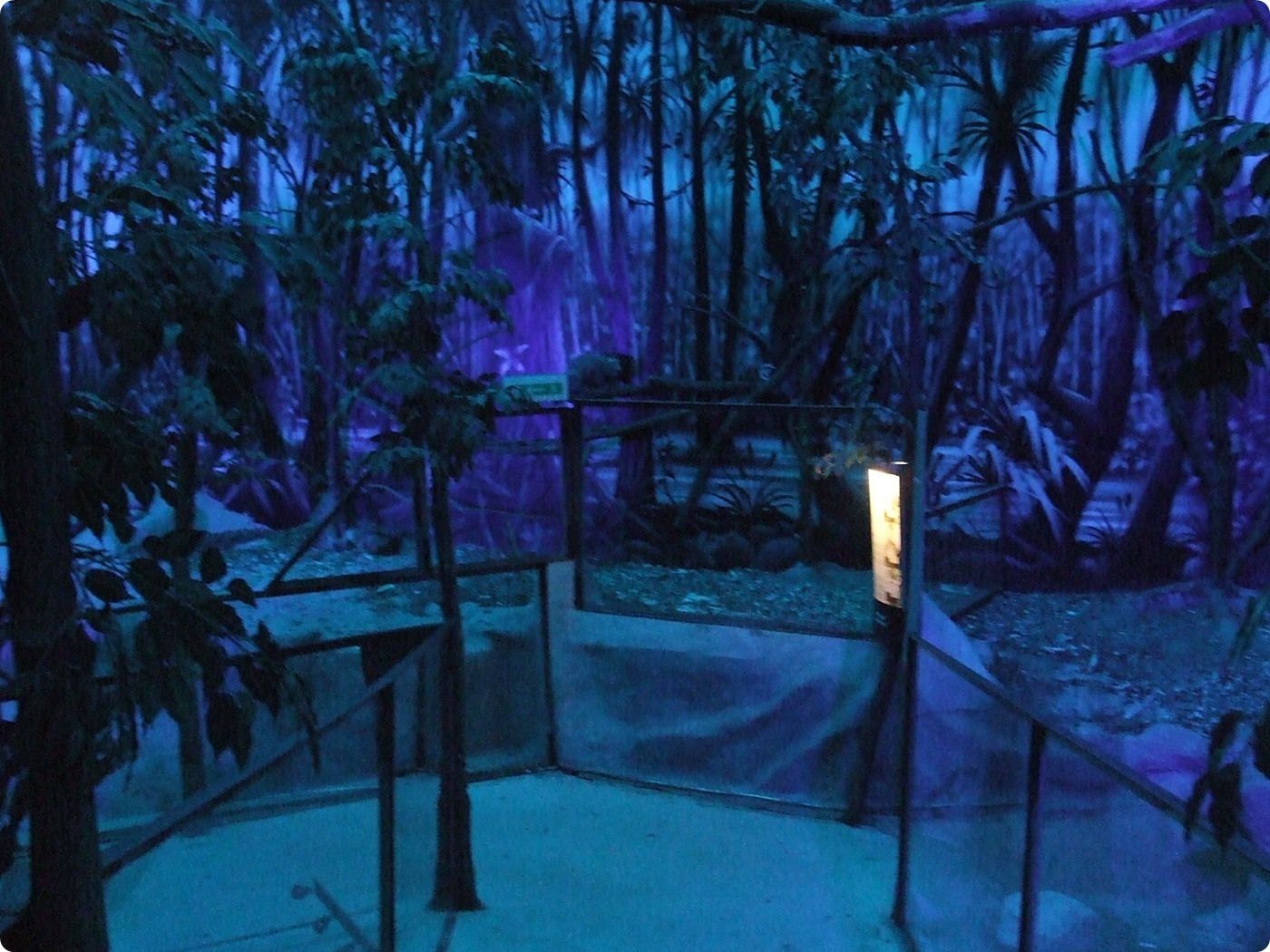 Az intézmény lepkegyűjteményének megtekintését követően nem kevésbé specifikus bemutatók következnek számunkra. A Nocturama és a Jungle Trek üvegcsarnokaiban tett néhány órás látogatásunkkal egy egész napot felölelő dzsungeltúrát helyettesíthetünk, hiszen előbbi bemutató a trópusi esőerdő éjjel aktív fajait, míg utóbbi a nappali életmódú, több esetben állatkertben kuriózum faját tárja elénk.