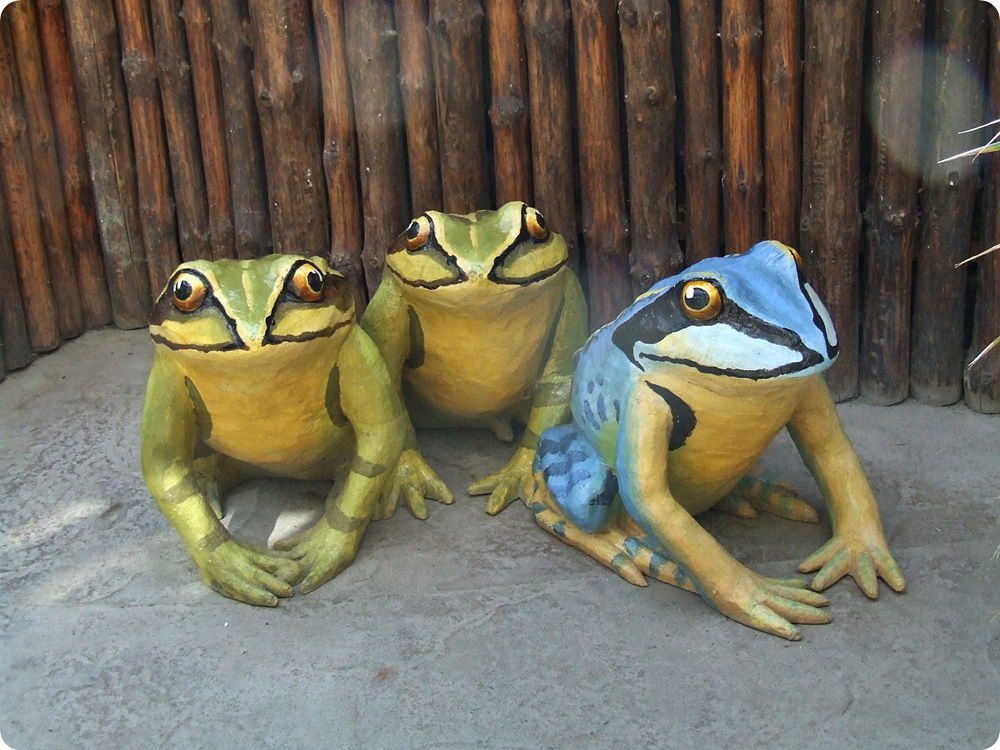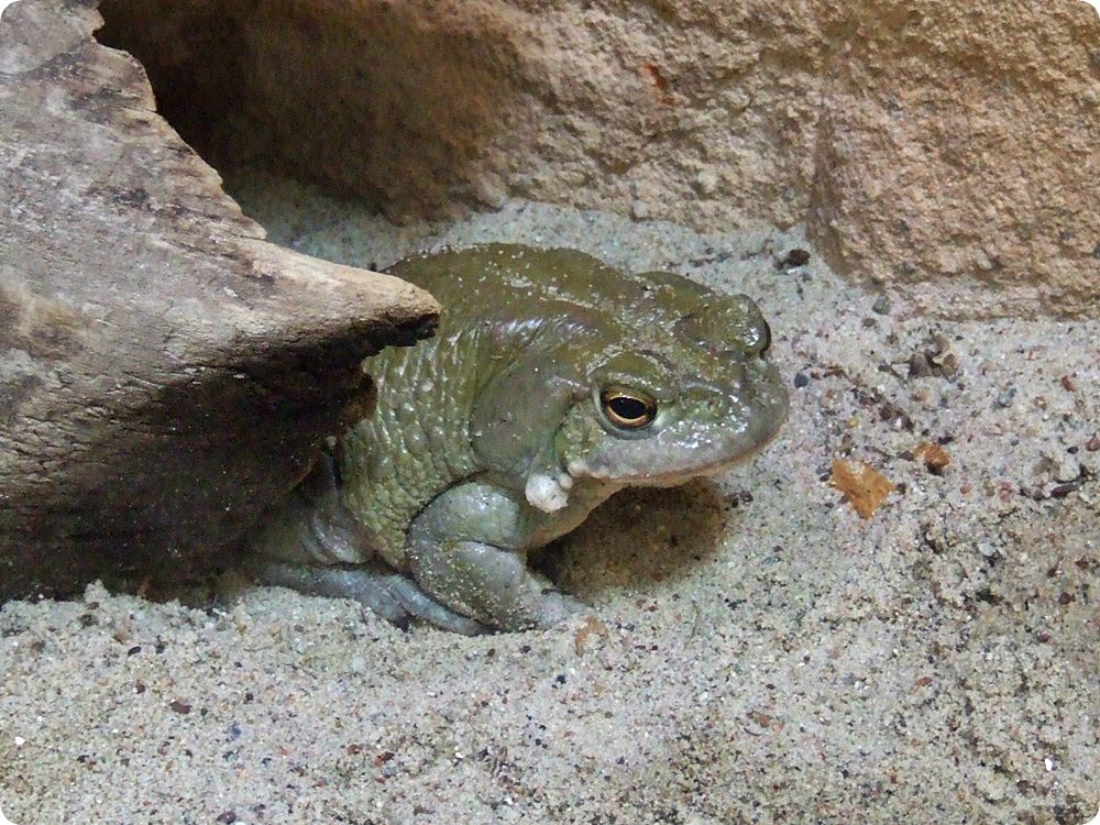 A kétéltűek bemutatóit szintén egy külön folyosón találhatjuk, ahol mexikói axolotl (Ambystoma mexicanum), bordás gőte (Pleurodeles waltl), keleti tűzhasú unka (Bombina orientalis), vörösszemű levelibéka v. makibéka (Agalychnis callidryas), paradicsombéka (Dyscophus guineti), aranymantella (Mantella aurantiaca) és óriás hegyi béka (Leptodactylus fallax) látható. Utóbbi súlyosan veszélyeztetett fajt 2013-ban és 2016-ban is sikeresen szaporította az intézmény. Habár nem kétéltű, de nagyrészt vízi életmódja miatt itt kerülnek bemutatásra a krokodilfarkú bütykösgyík (Shinisaurus crocodilurus) is. A nyílméregbékák – mint a Dendrobates leucomelas, a Dendrobates tinctorius „Pic Matecho”, „Azureus” és „Alanis” változata, Epipedobates tricolor és Phyllobates vittatus – igényesen kialakított, gazdagon növényesített terráriumokban élnek.