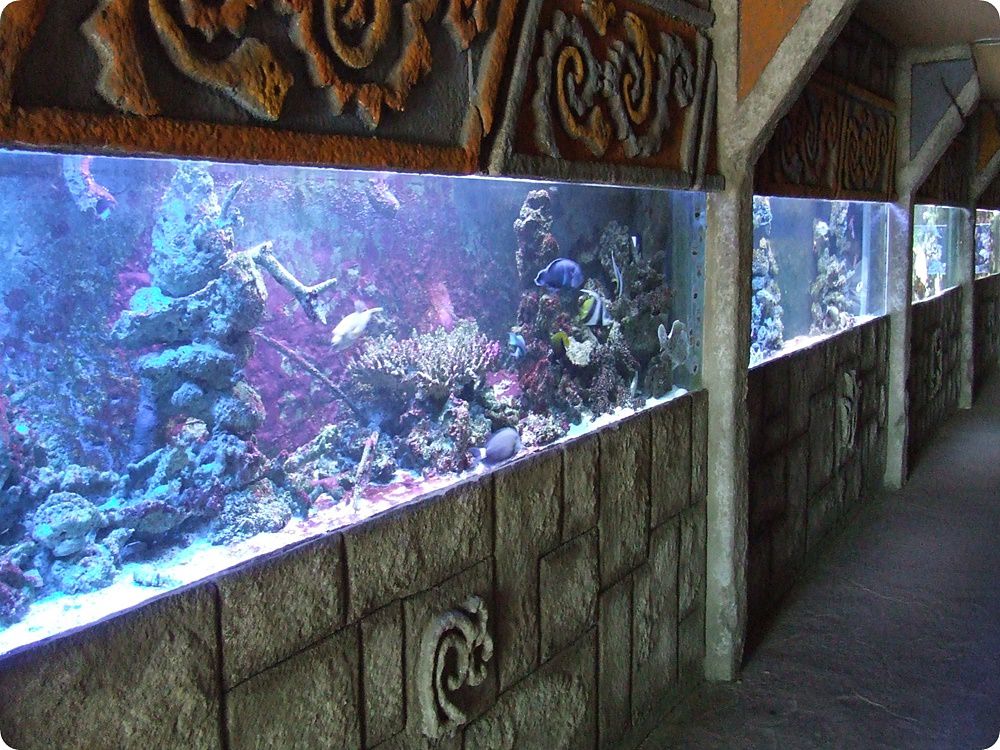A bejárat folyosóján kialakított akvárium részleg elsősorban kisebb tengeri medencékből áll, melyekben néhány meghatározó fajként a közönséges bohóchalat (Amphiprion ocellaris), Picasso-halat (Rhinecanthus aculeatus), sünhalat (Diodon hystrix), tűzhalat (Pterois volitans), rókafejű nyúlhalat (Siganus vulpinus), palettás doktorhalat (Paracanthurus hepatus), csíkos doktorhalat (Acanthurus lineatus), narancsfoltos doktorhalat (Acanthurus olivaceus), holdfény doktorhalat (Acanthurus leucosternon), sárga doktorhalat (Zebrasoma flavescens), rúzsos doktorhalat (Naso lituratus), elegáns doktorhalat (Naso elegans), nagyorrú doktorhalat (Naso vlamingii), hatcsíkos ajakoshalat (Pseudocheilinus hexataenia), narancsfoltos kék tündér ajakoshalat (Cirrhilabrus aurantidorsalis), püspöklila császárhalat (Centropyge bispinosa), kék korallsügeret (Chrysiptera cyanea), kardinálishalat (Pterapogon kauderni) említhetjük.