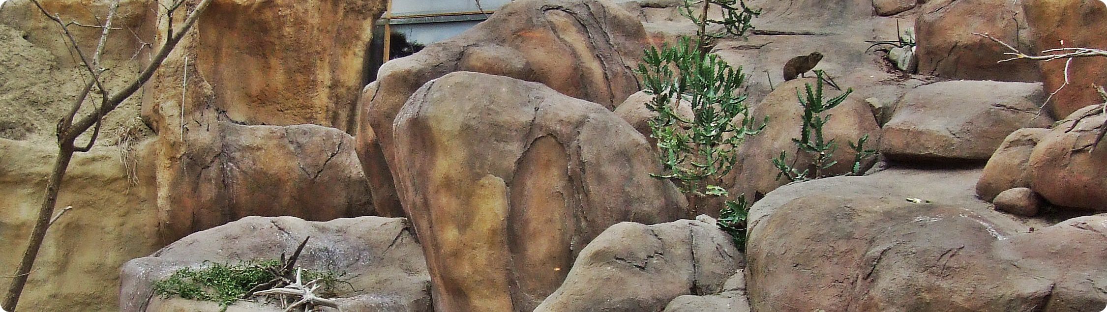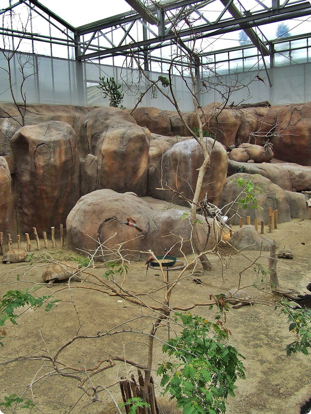 A sziklákon rendkívül fürgén és ügyesen mozgó „akrobaták” szomszédságában egy szintén érdekes életközösséget figyelhetünk meg, ahol szavannalakó tarajossülök (Hystrix africaeaustralis), szurikáták (Suricata suricatta) és sarkantyús teknősök (Centrochelys sulcata) élnek. Ezen túlmenően a nagy csarnok „dinamikáját” tovább fokozza néhány szabad röptű madárfaj.